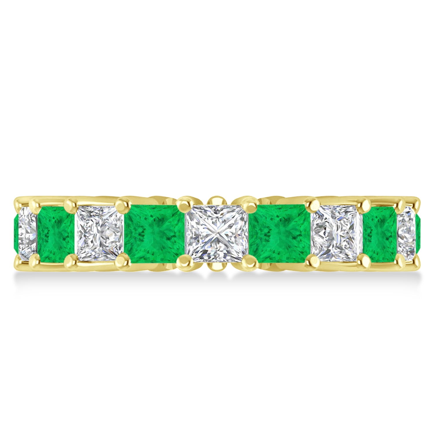 Princess Diamond & Emerald Wedding Band 14k Yellow Gold (5.61ct)
