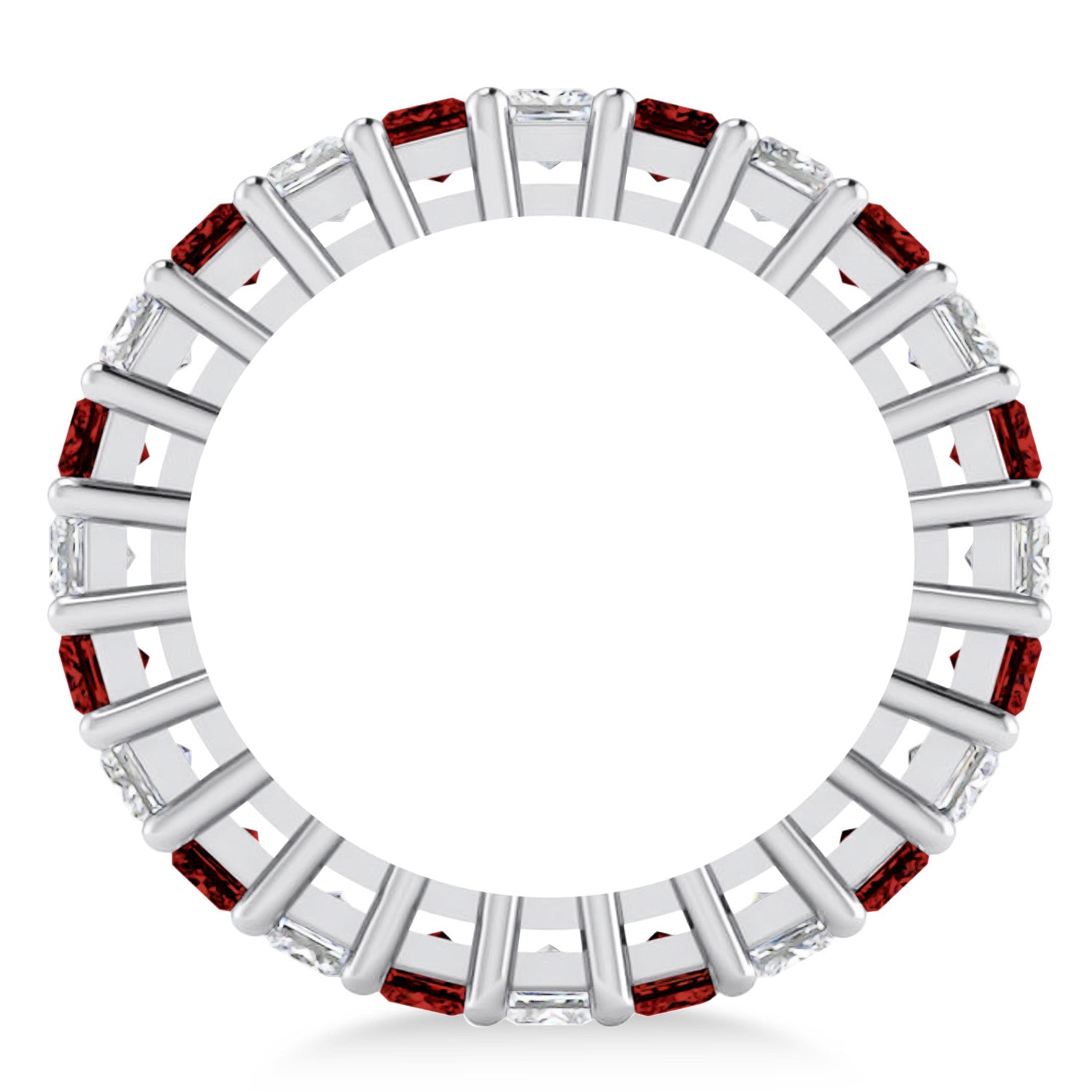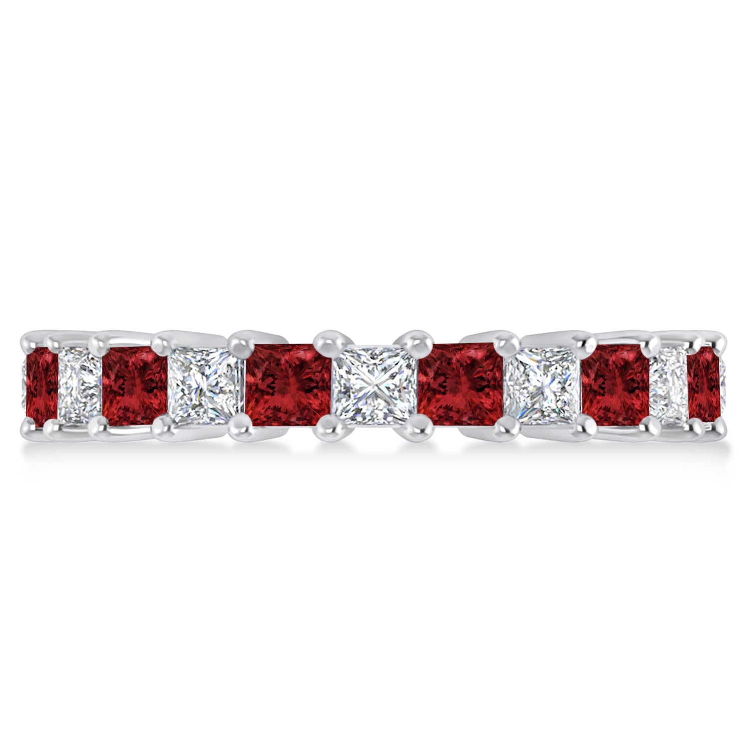 Princess Diamond & Garnet Wedding Band 14k White Gold (3.12ct)