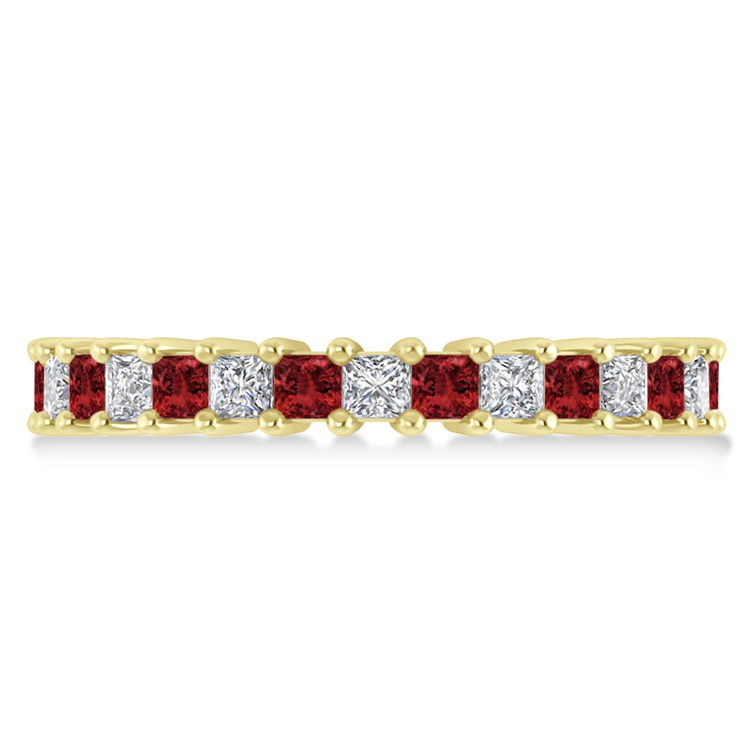 Princess Diamond & Garnet Wedding Band 14k Yellow Gold (2.32ct)