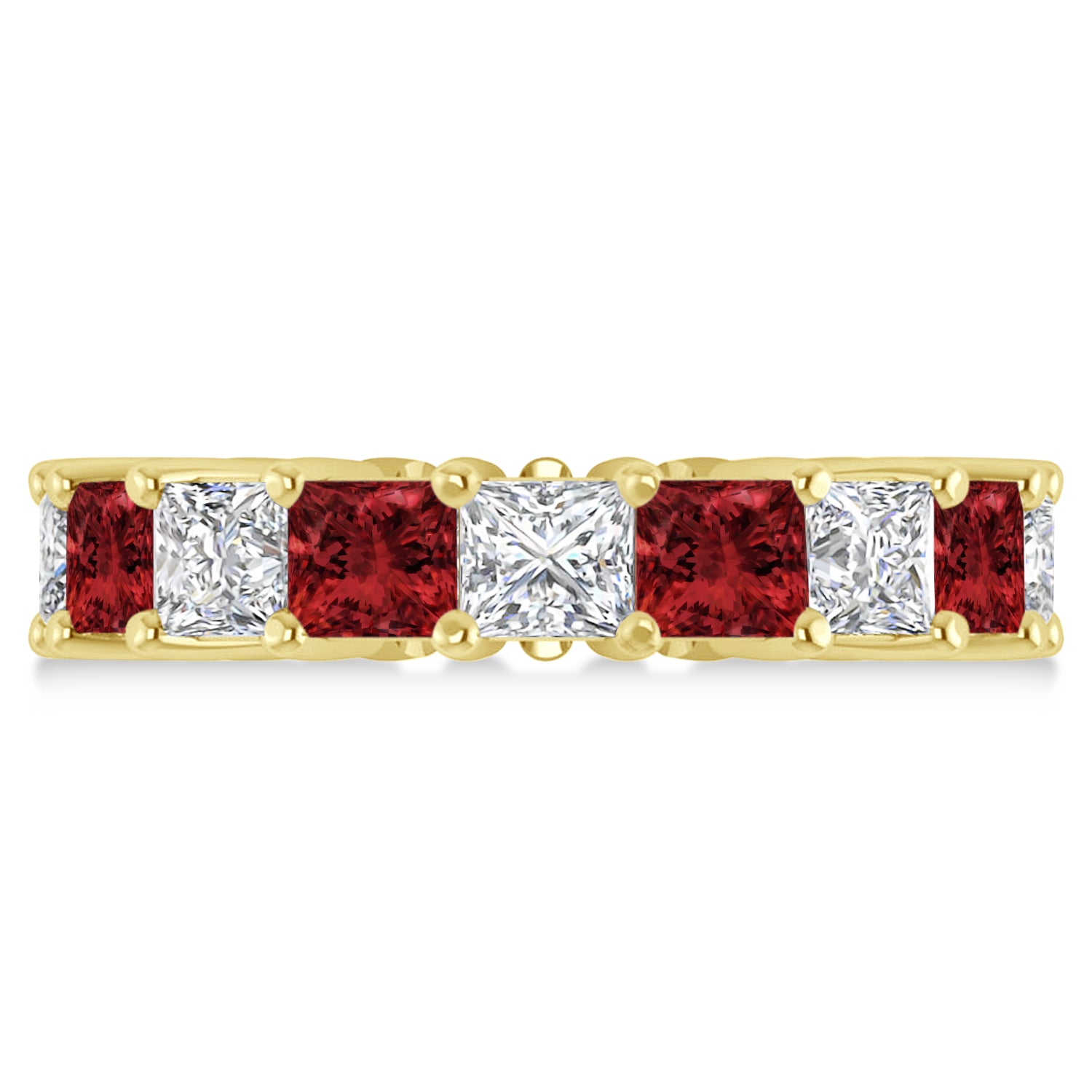 Princess Diamond & Garnet Wedding Band 14k Yellow Gold (7.17ct)
