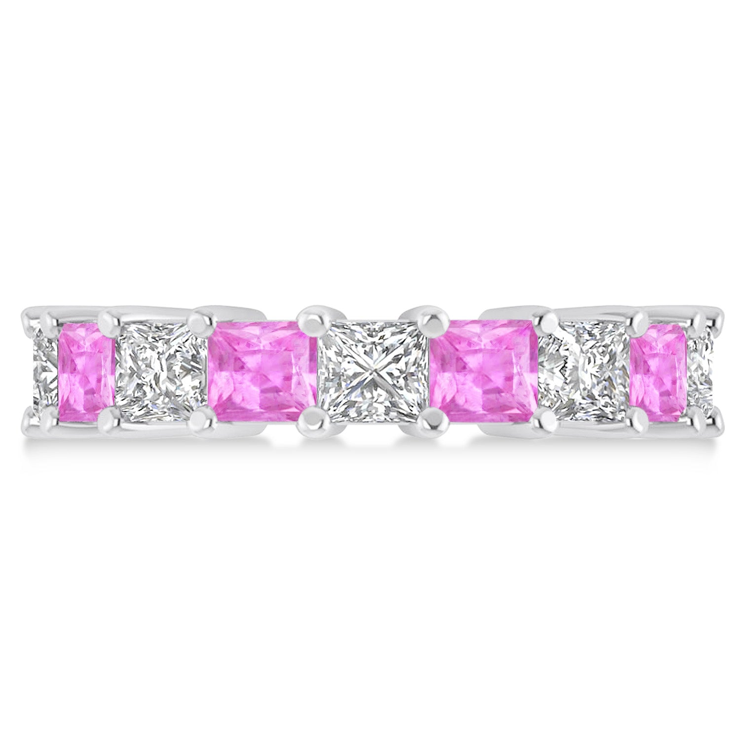 Princess Diamond & Pink Sapphire Wedding Band 14k White Gold (5.94ct)