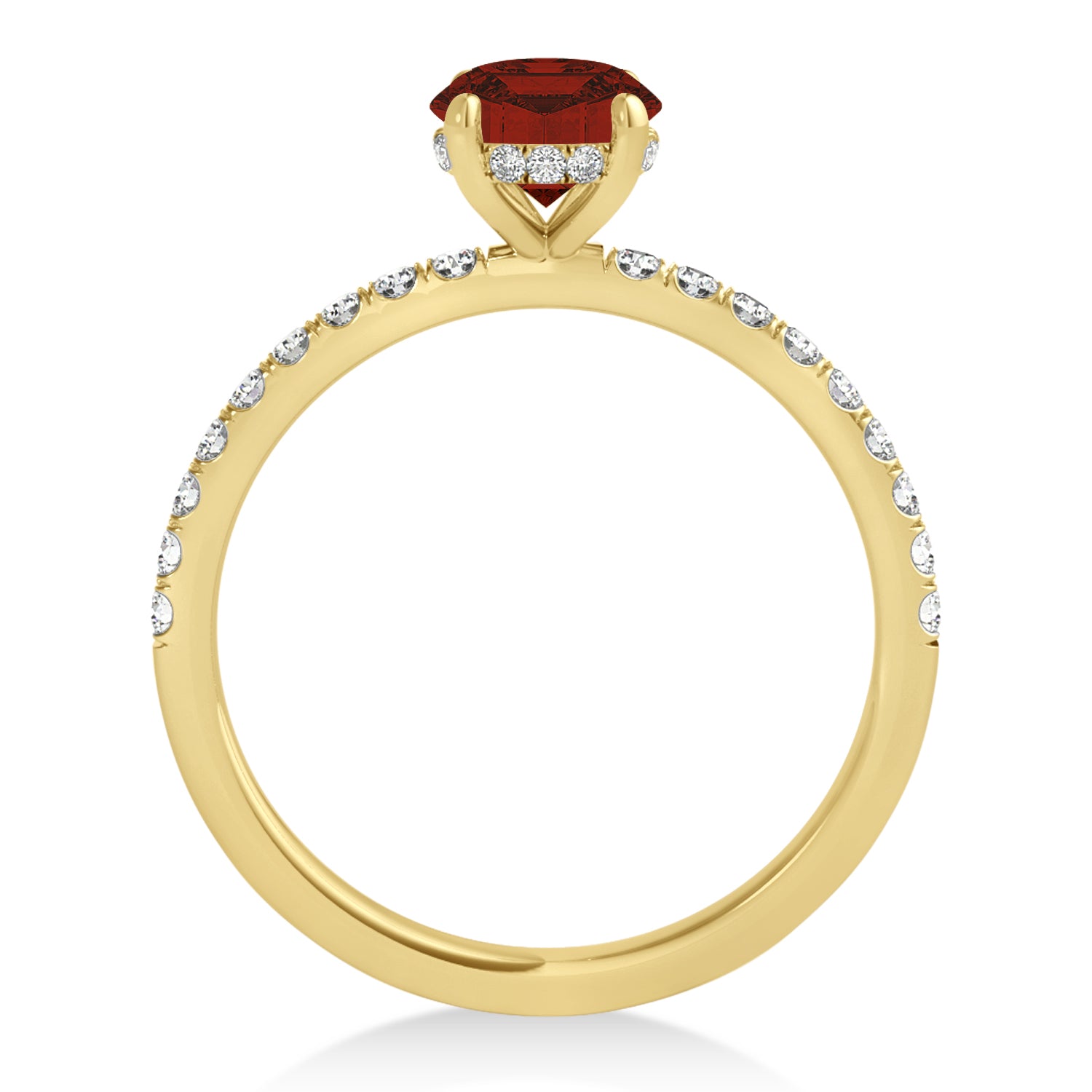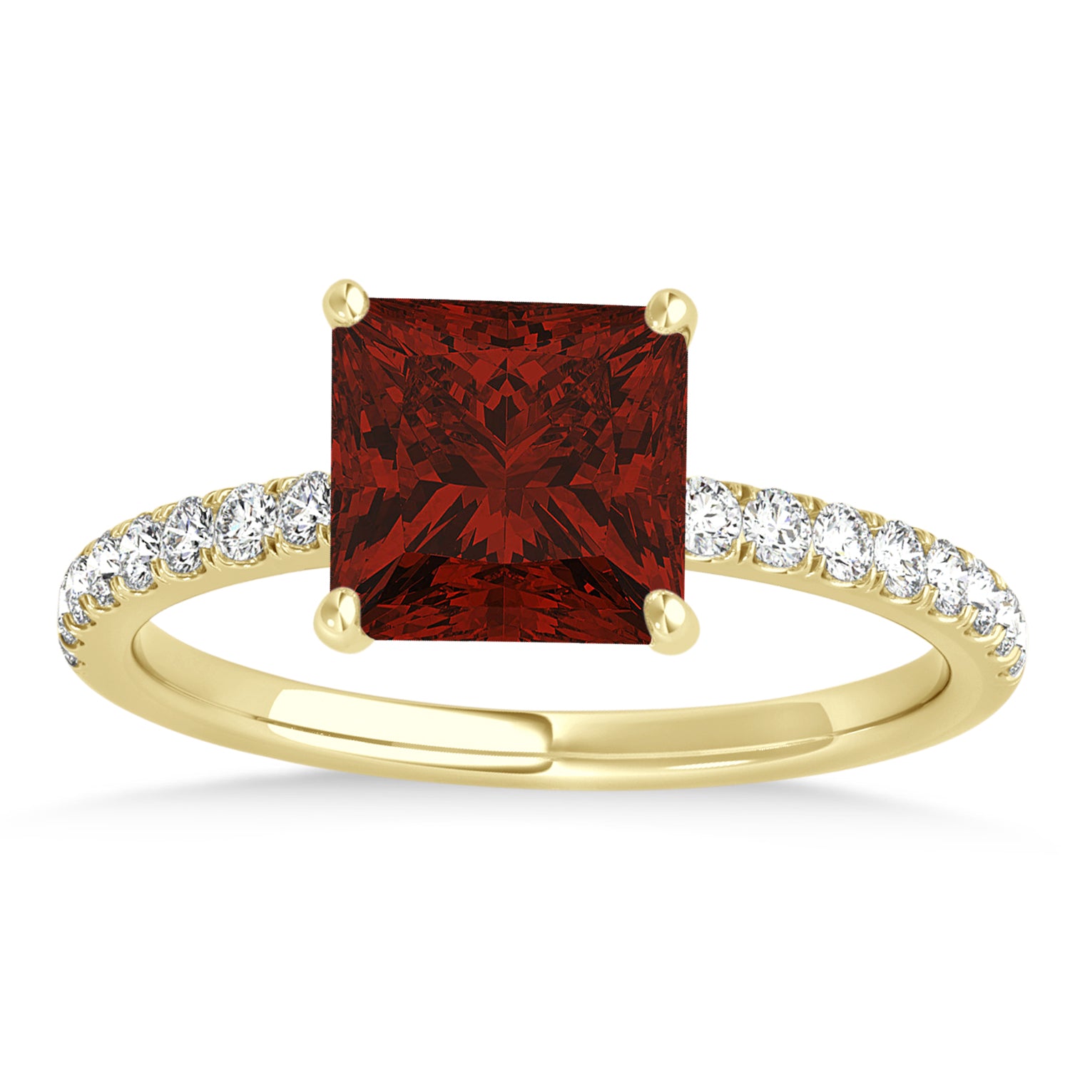 Princess Garnet & Diamond Single Row Hidden Halo Engagement Ring 14k Yellow Gold (0.81ct)