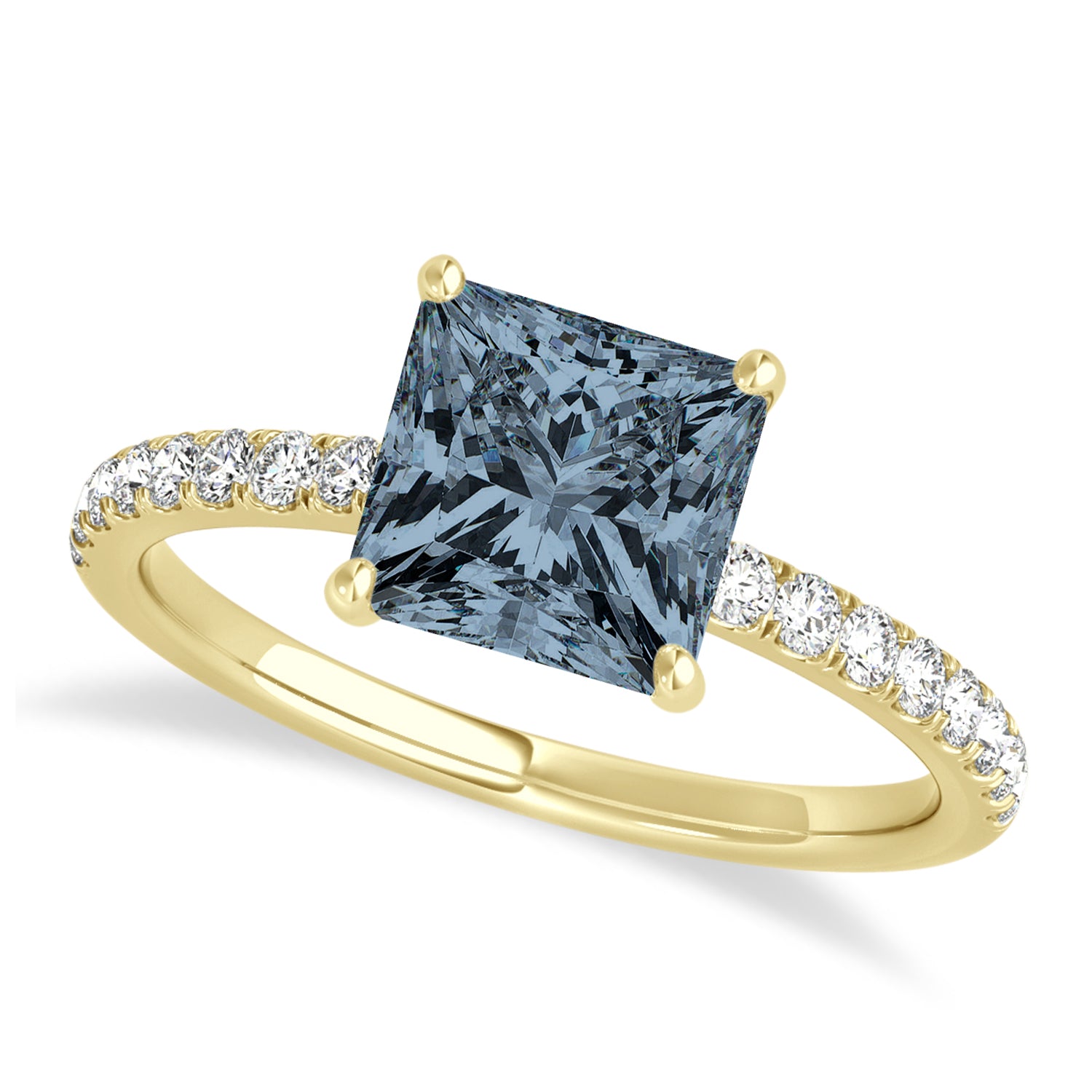 Princess Gray Spinel & Diamond Single Row Hidden Halo Engagement Ring 14k Yellow Gold (0.81ct)