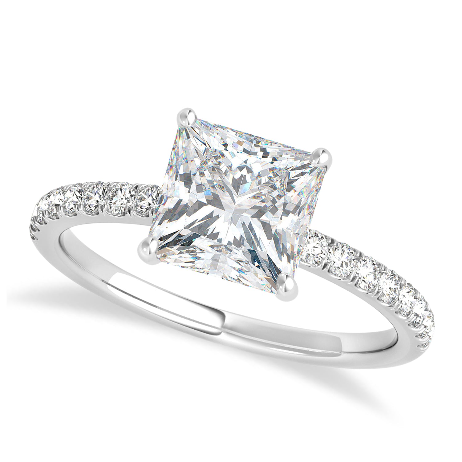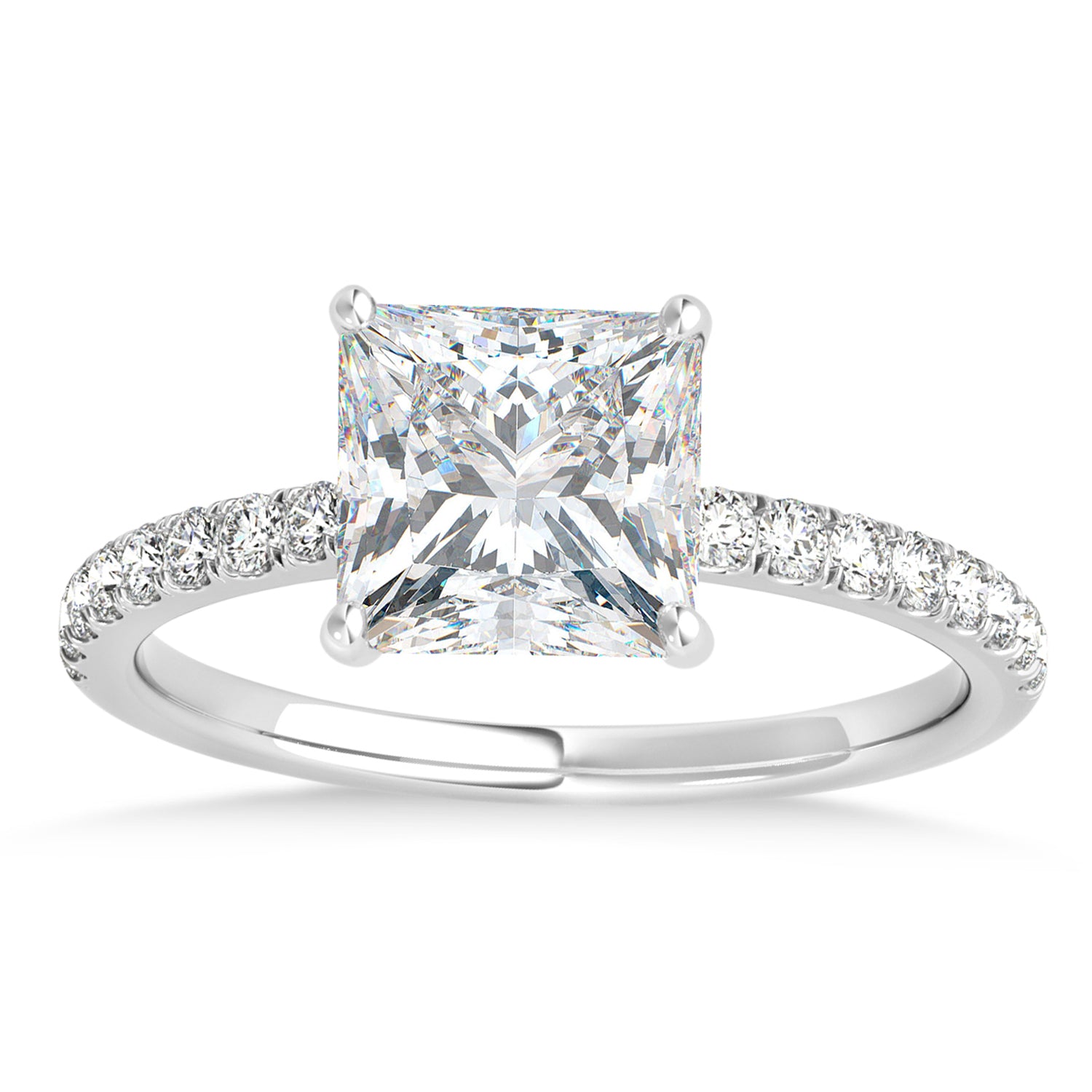 Princess Moissanite & Diamond Single Row Hidden Halo Engagement Ring 1
