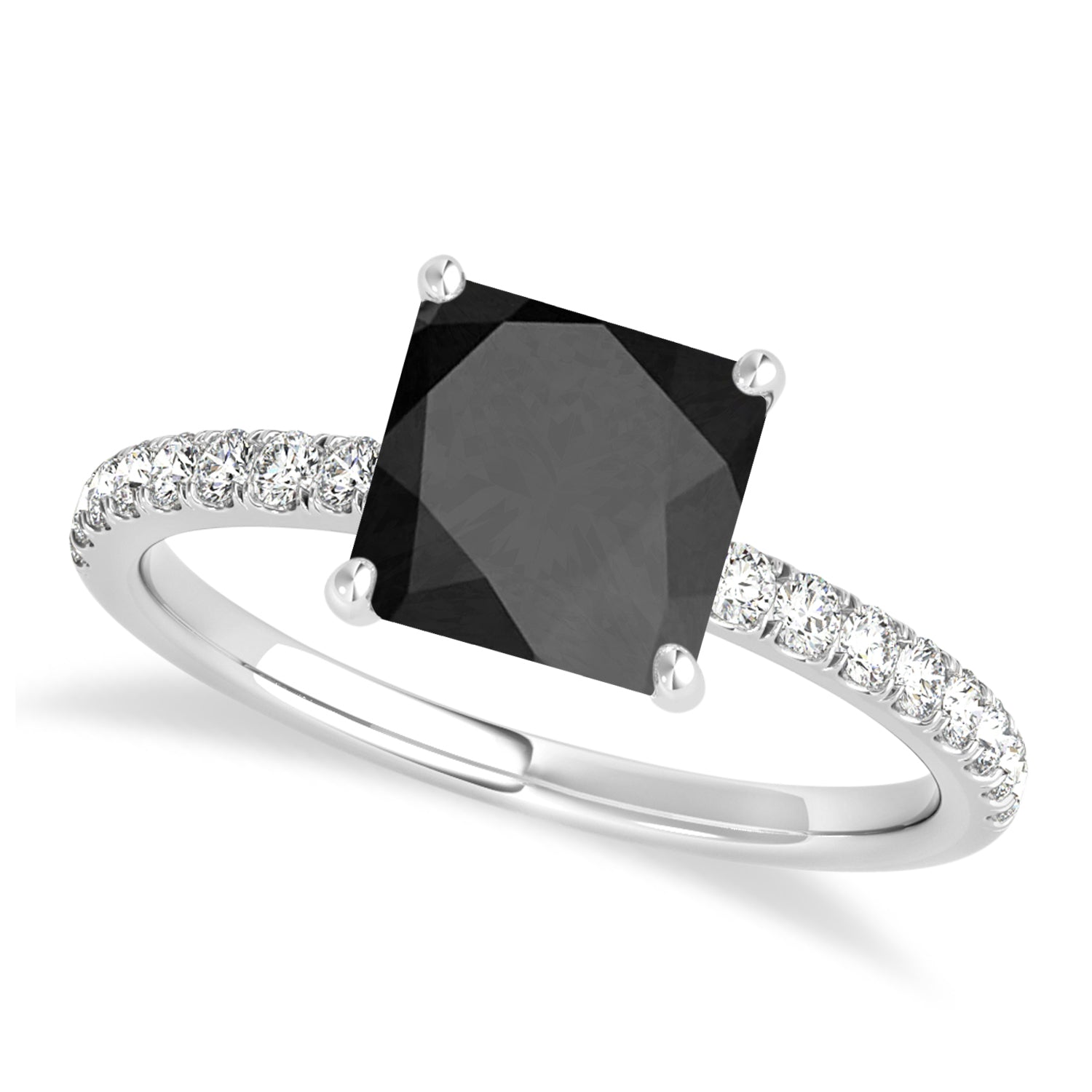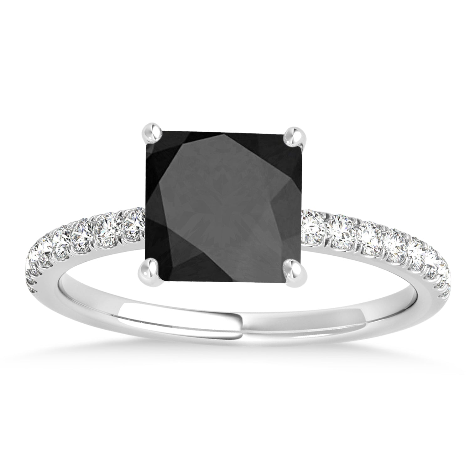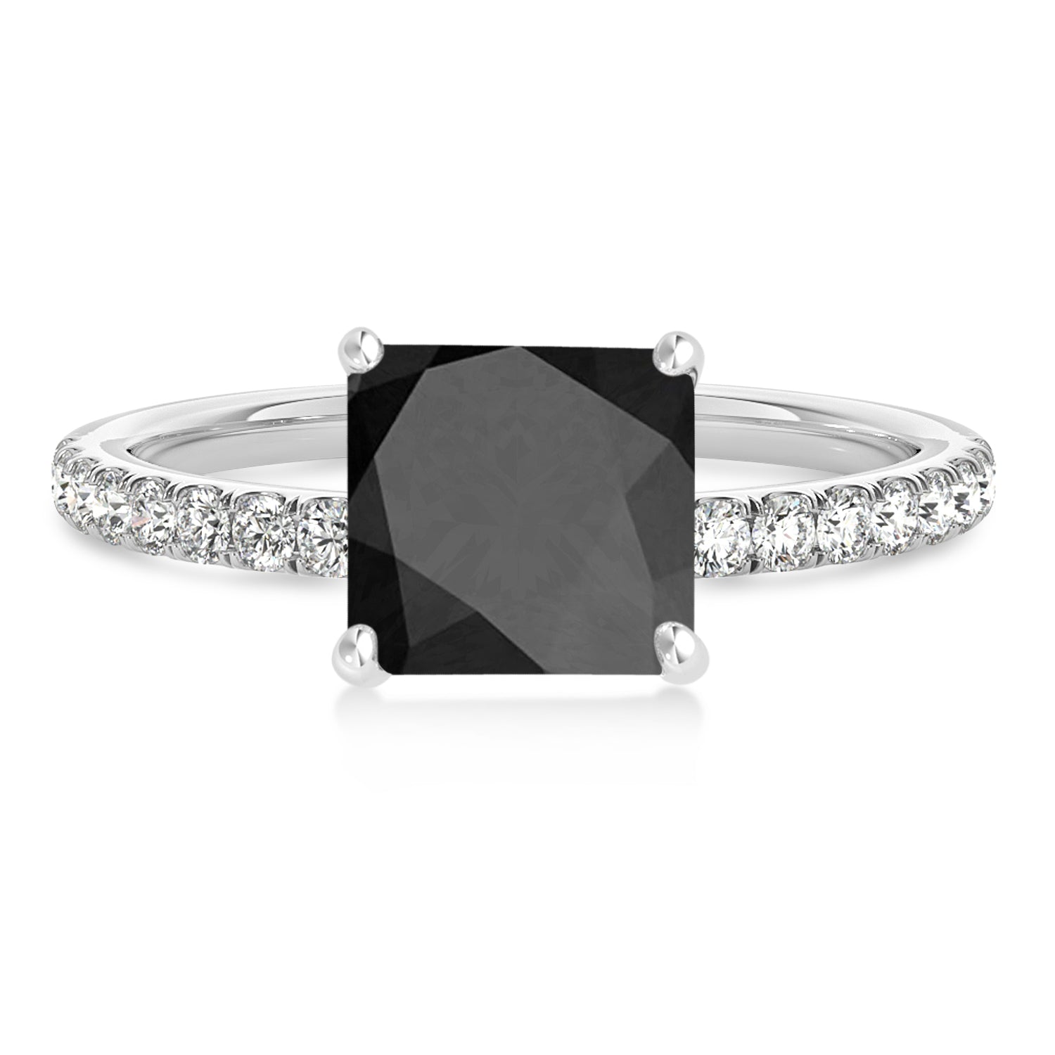 Princess Onyx & Diamond Single Row Hidden Halo Engagement Ring 18k White Gold (0.81ct)