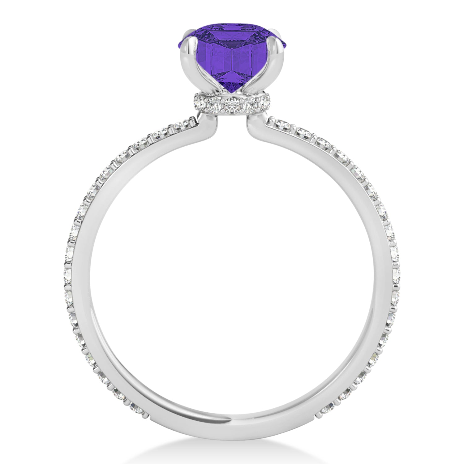 Princess Tanzanite & Diamond Hidden Halo Engagement Ring 14k White Gol