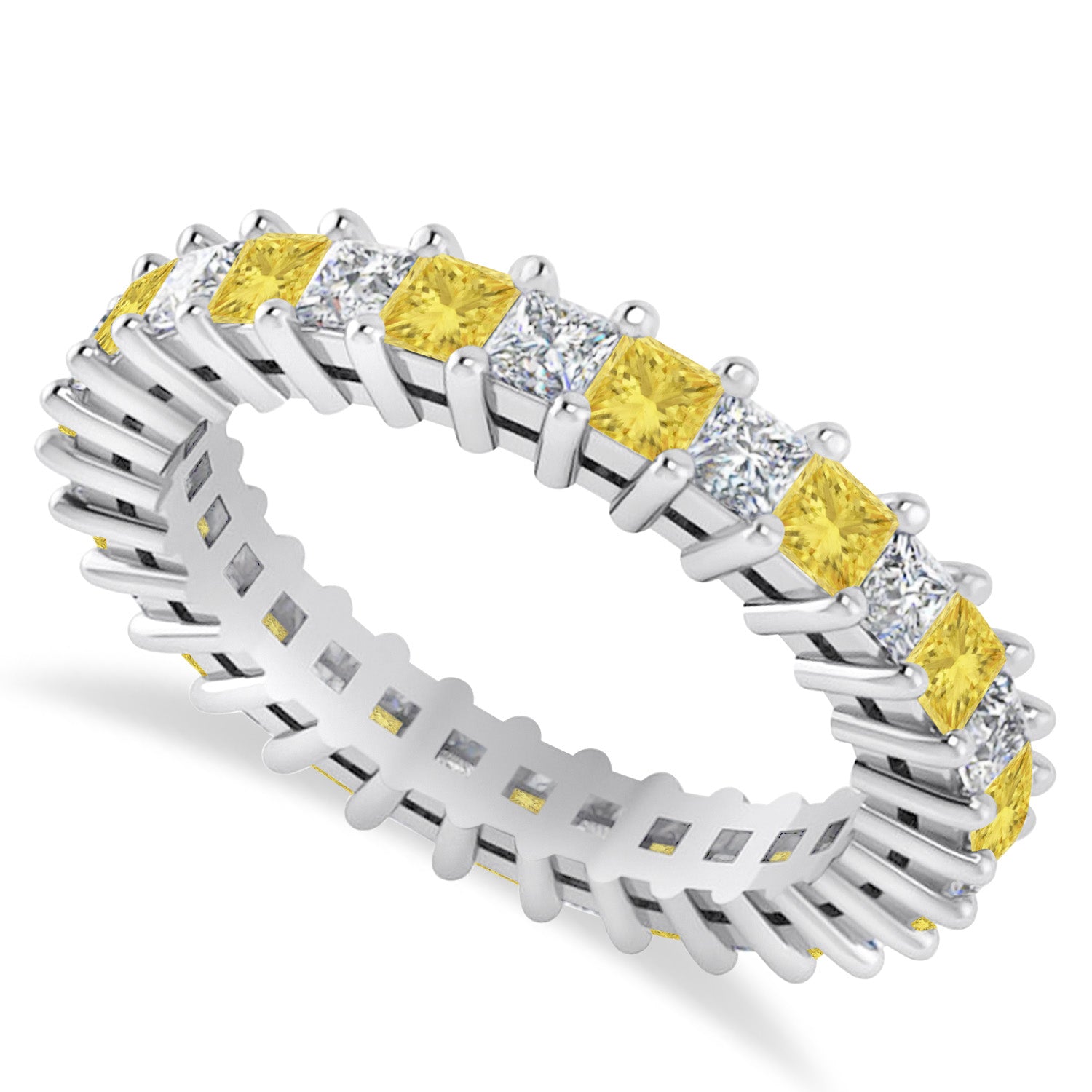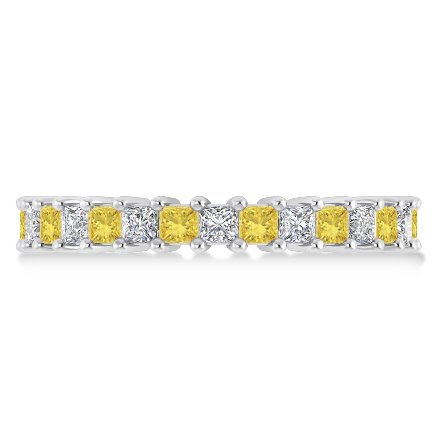Princess Yellow & White Diamond Wedding Band 14k White Gold (2.32ct)
