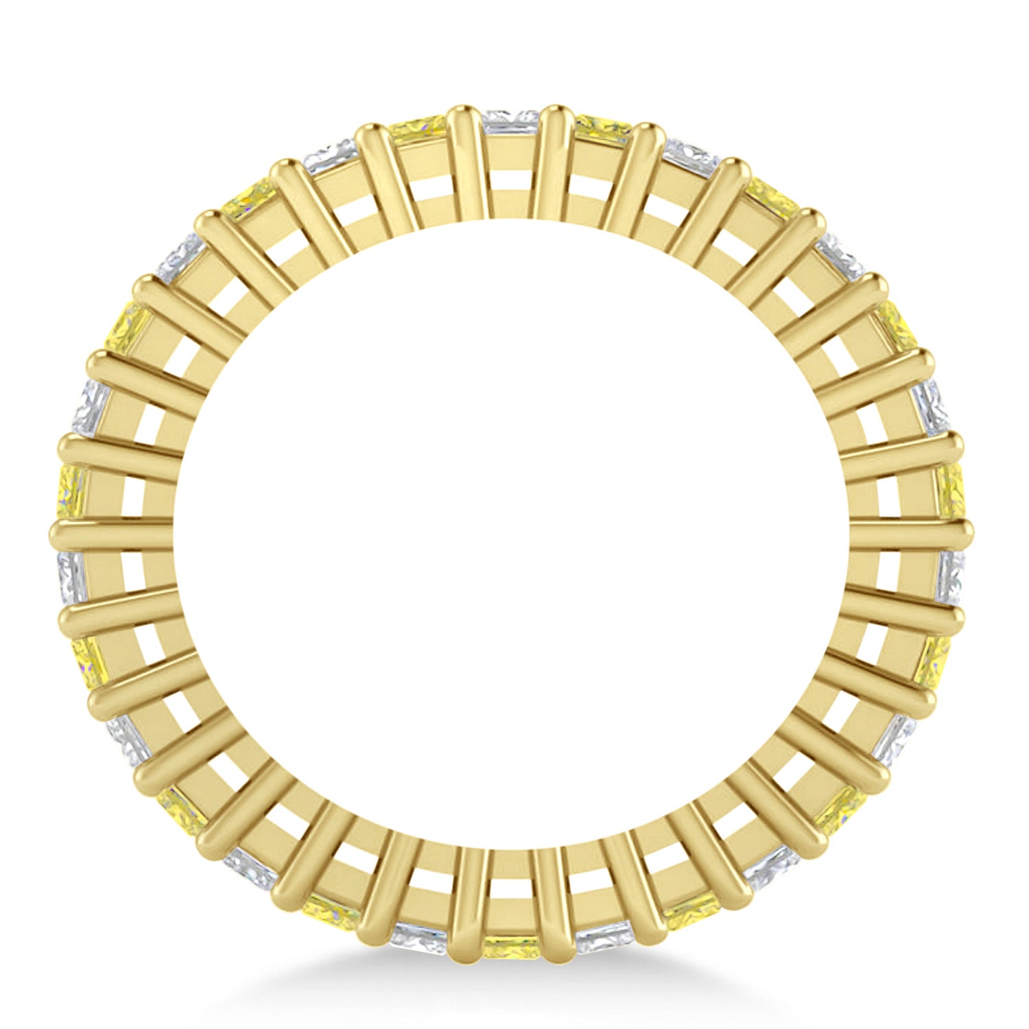 Set in 14k yellow gold, this eternity band features 14 diamonds and 15 yellow diamonds prong-set and flush right up against one another.