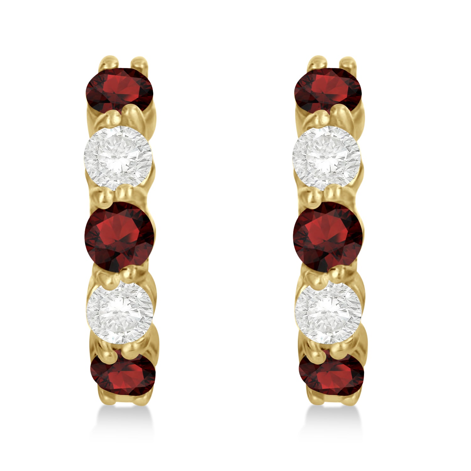 Prong Set Garnet & Diamond Hoop Earrings 14k Yellow Gold (1.94ct)