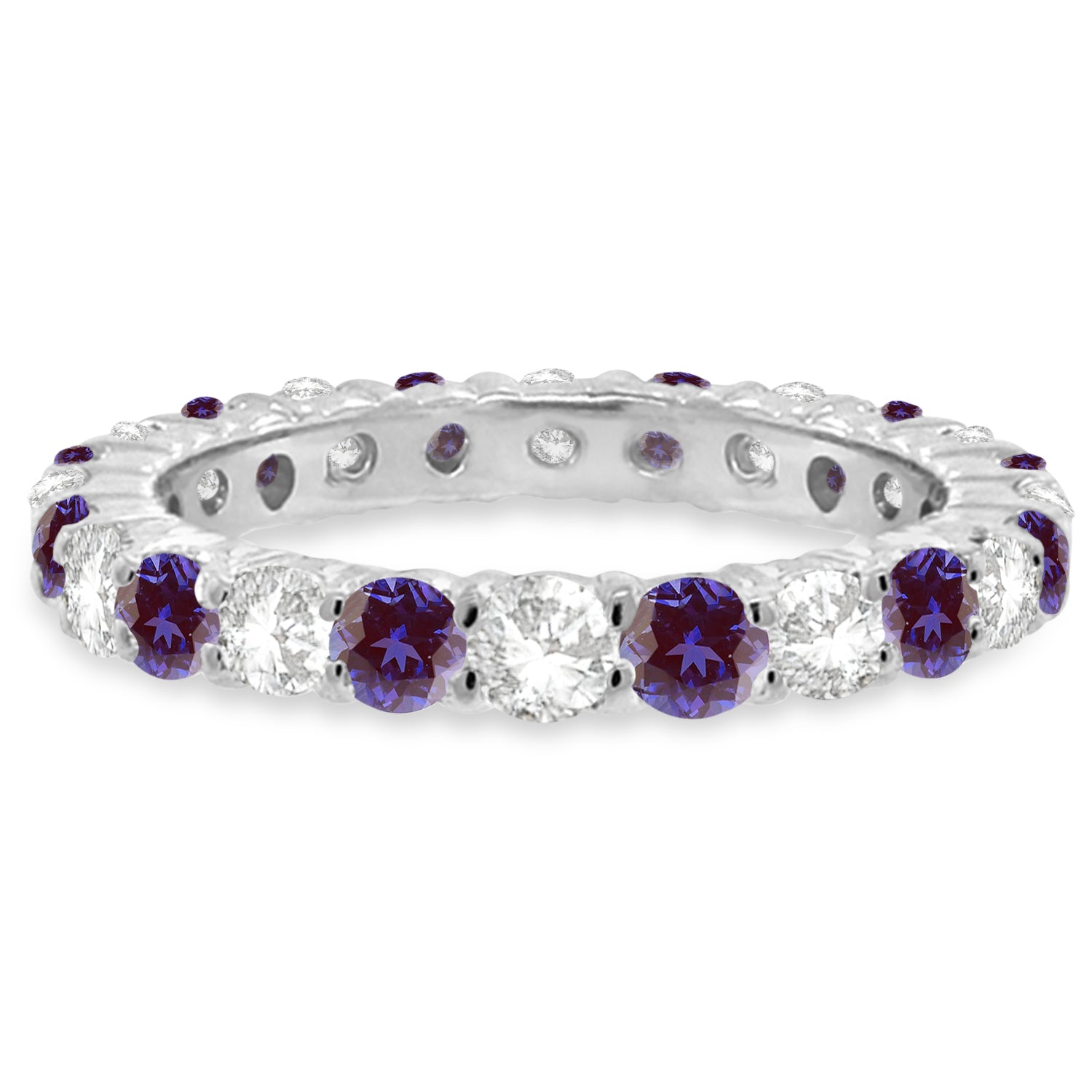 Purple Lab Alexandrite & Diamond Eternity Ring Band 14k White Gold (1.