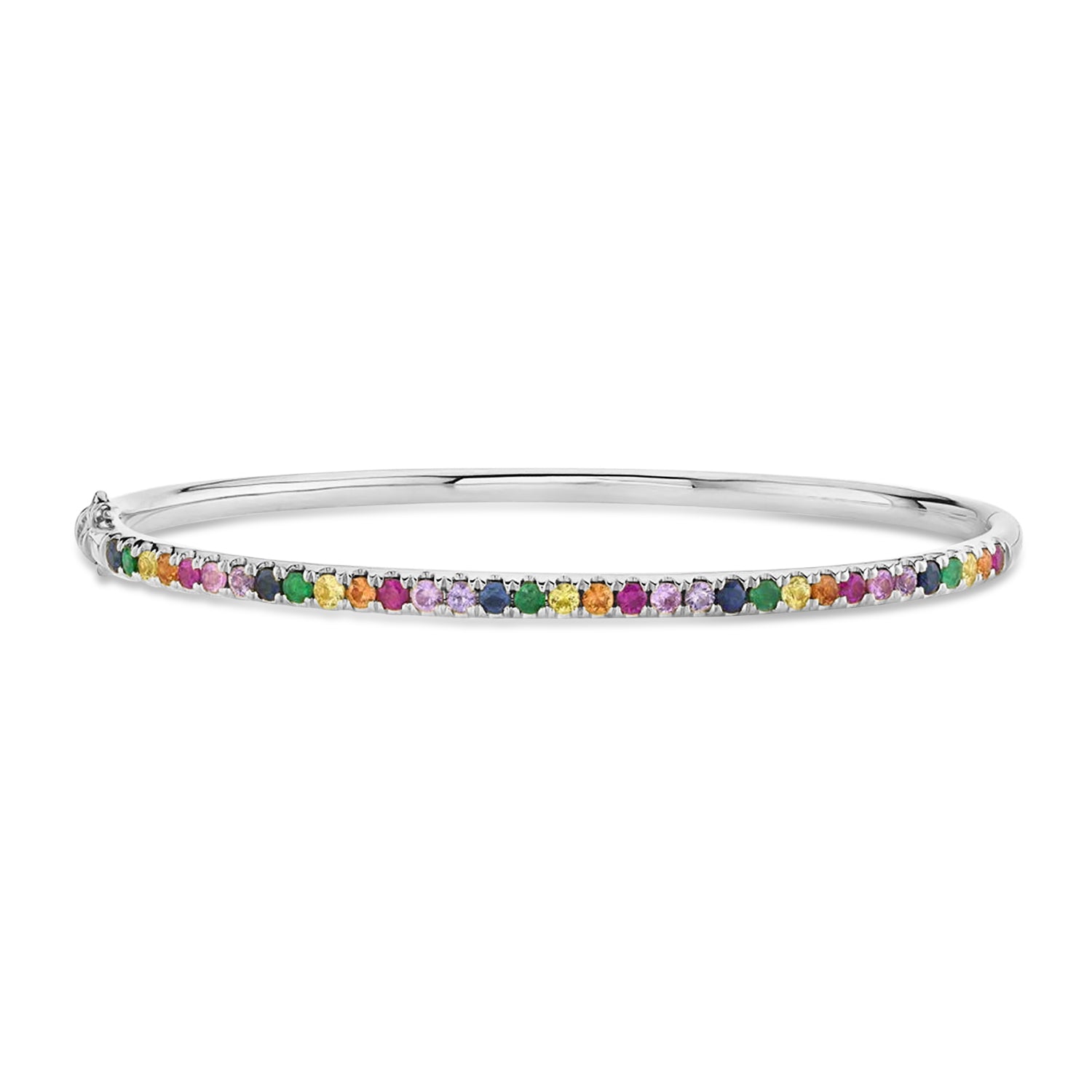 Rainbow Sapphire Gemstone Pave Bracelet in 14k White Gold (1.18ct)