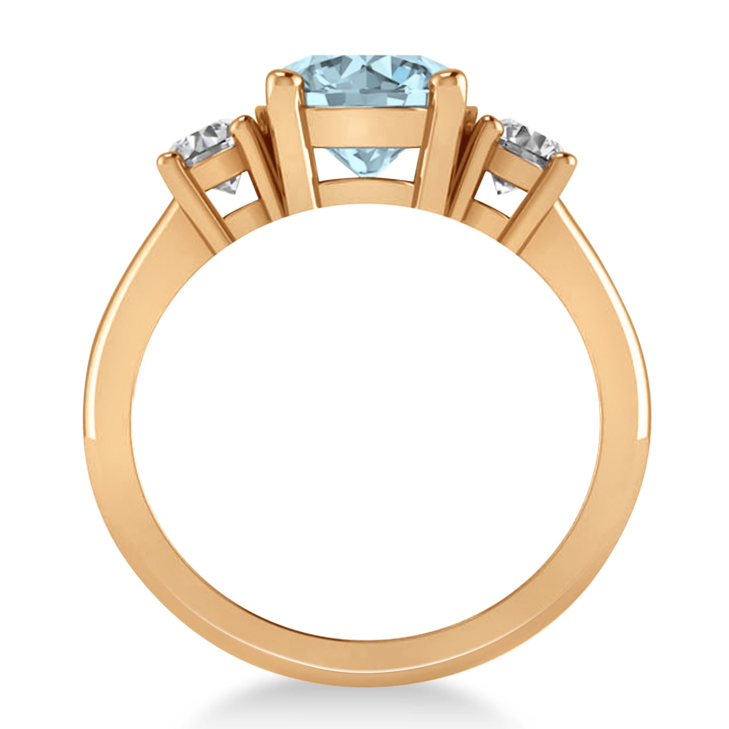 Round 3-Stone Aquamarine & Diamond Engagement Ring 14k Rose Gold (2.50