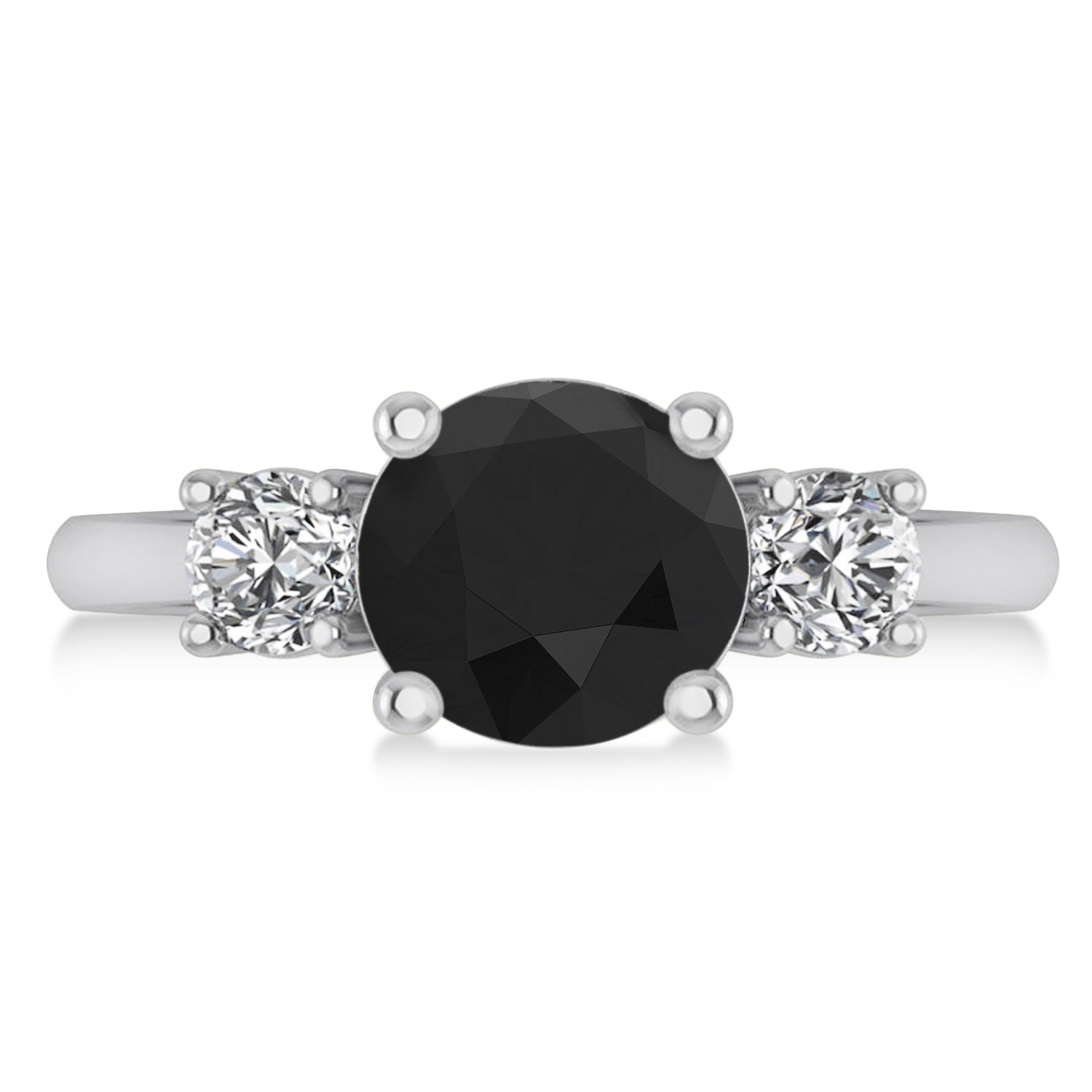 Round 3-Stone Black & White Diamond Engagement Ring 14k White Gold (2.