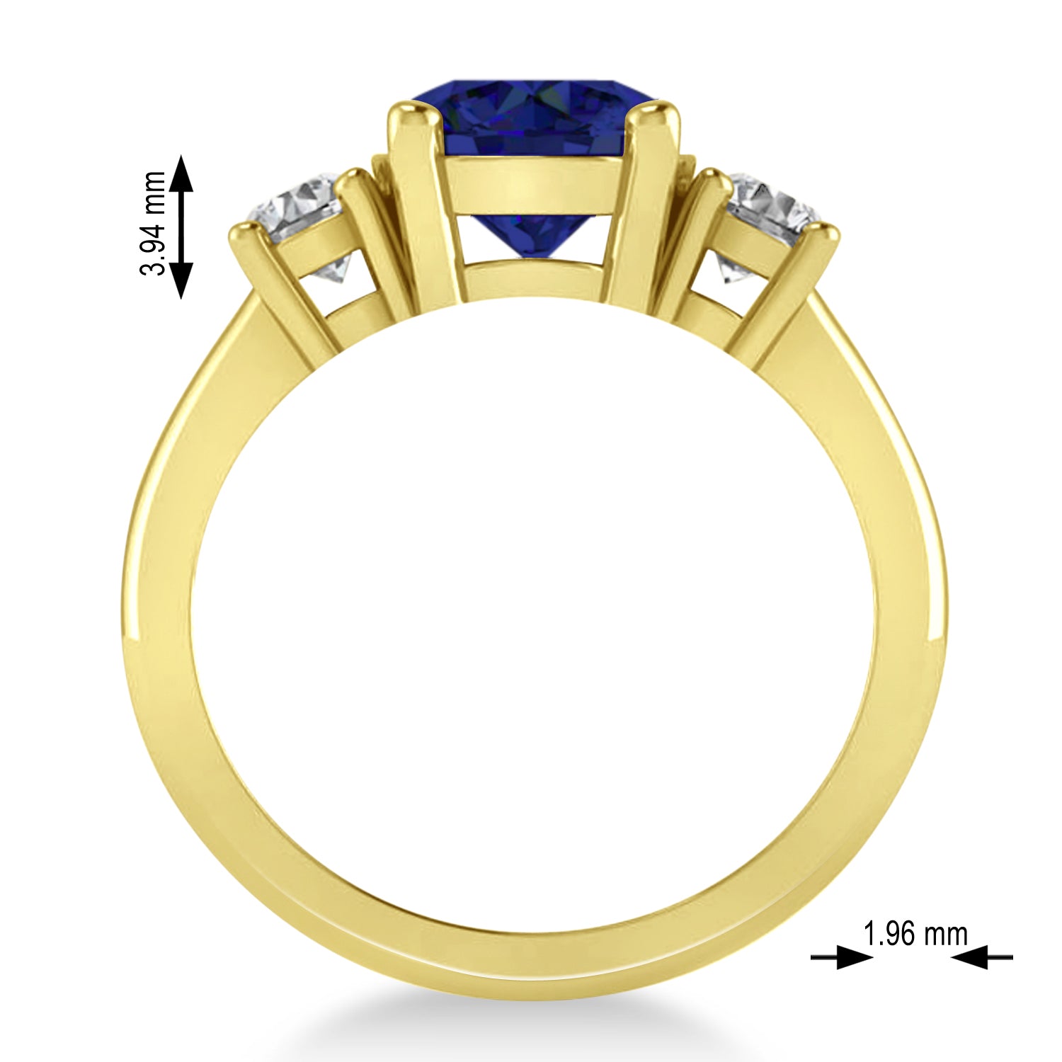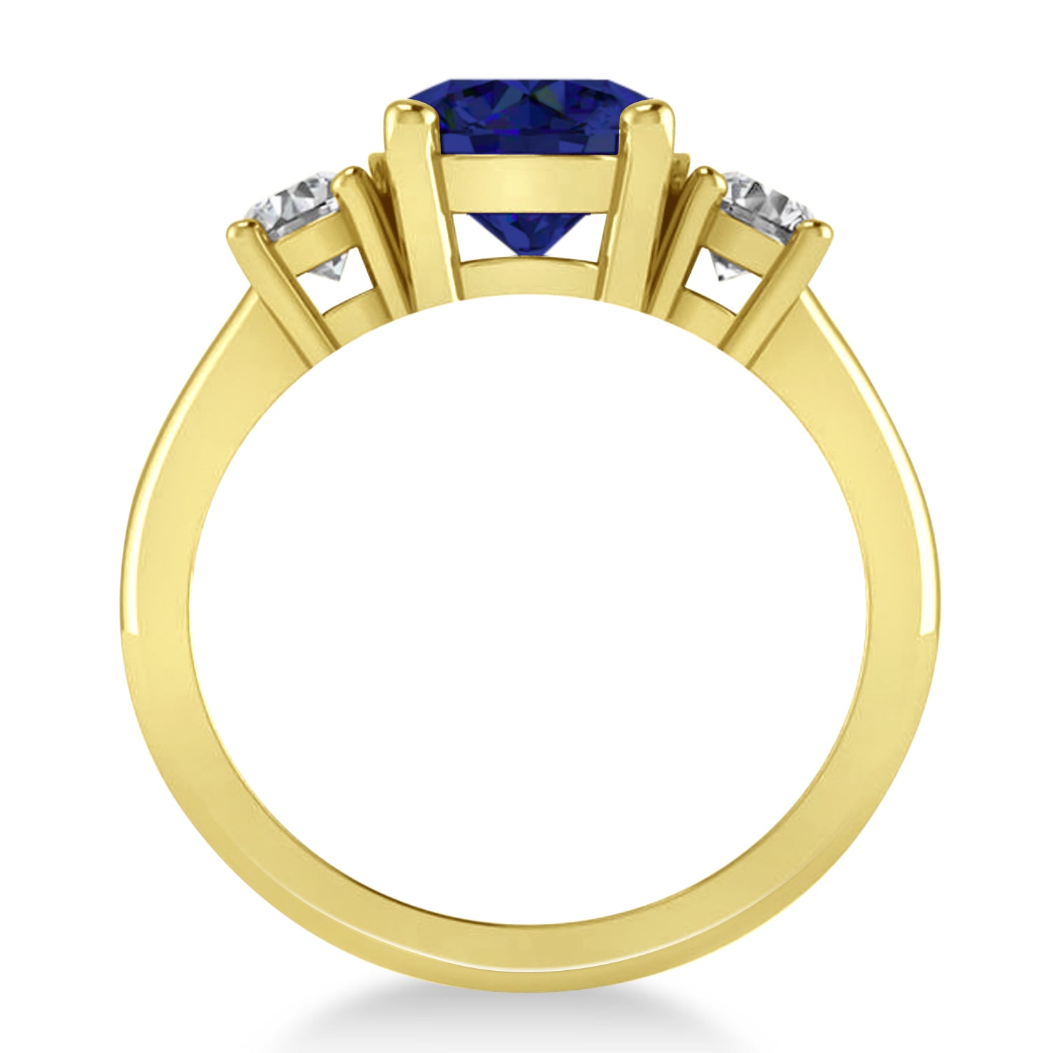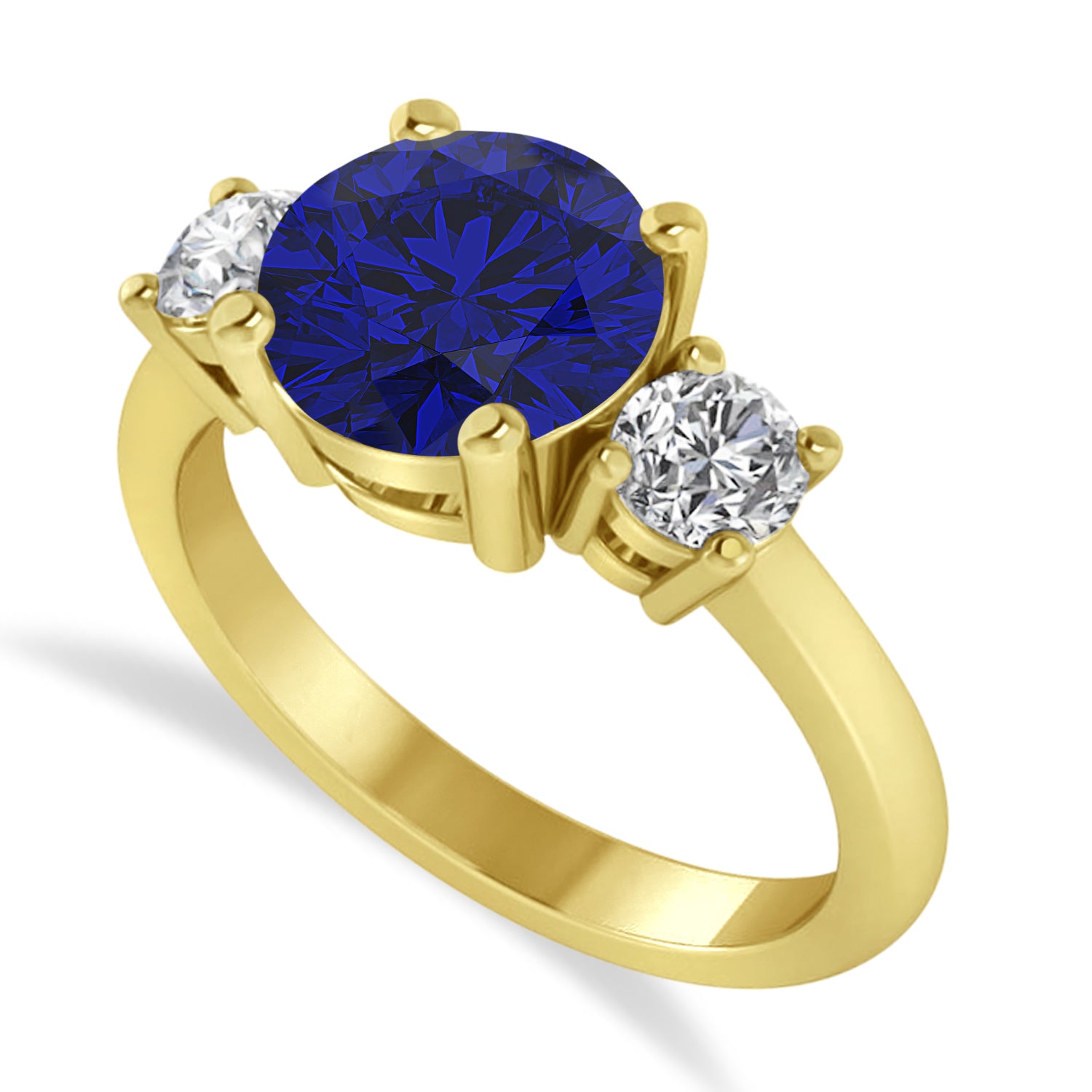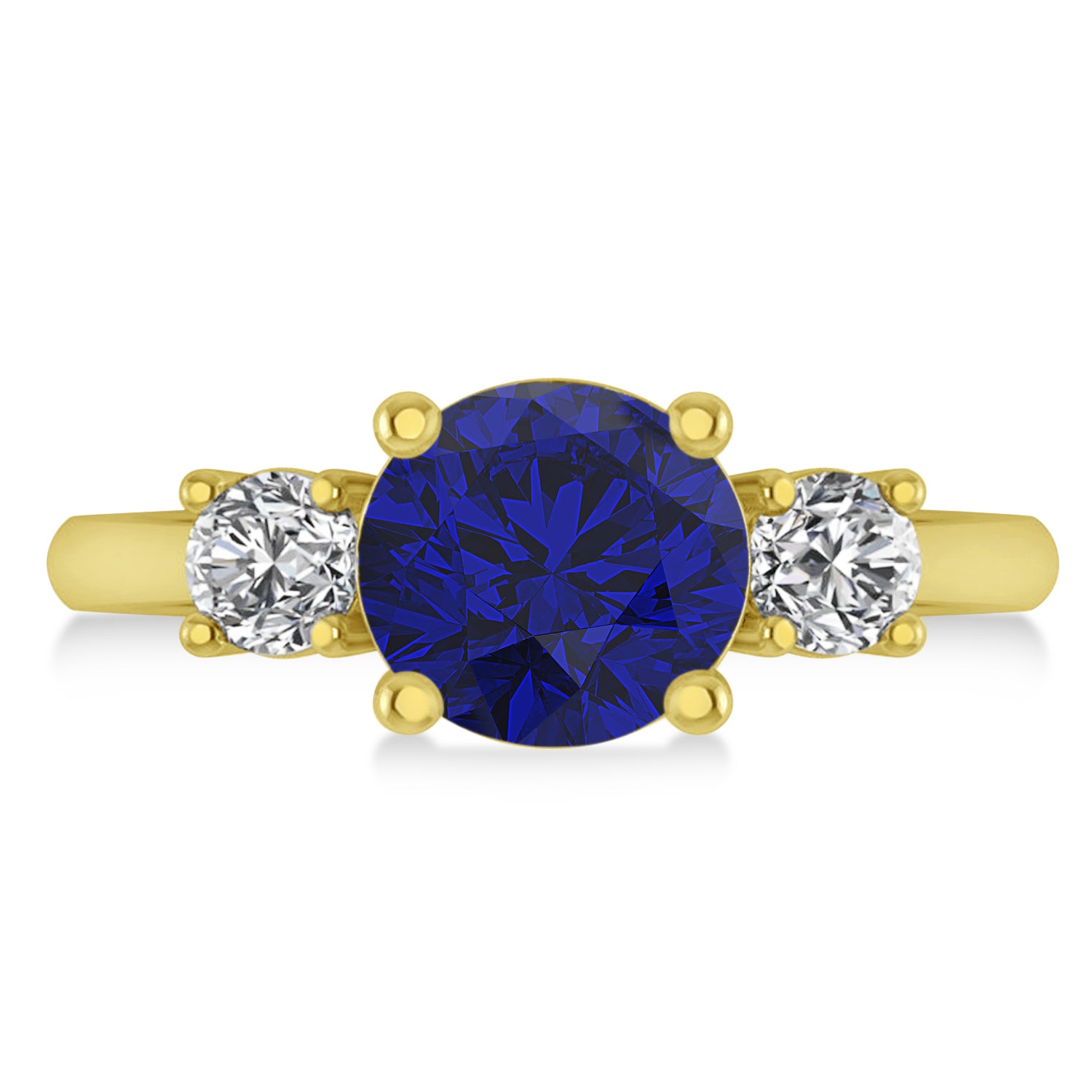 Round 3-Stone Blue Sapphire & Diamond Engagement Ring 14k Yellow Gold (2.50ct)