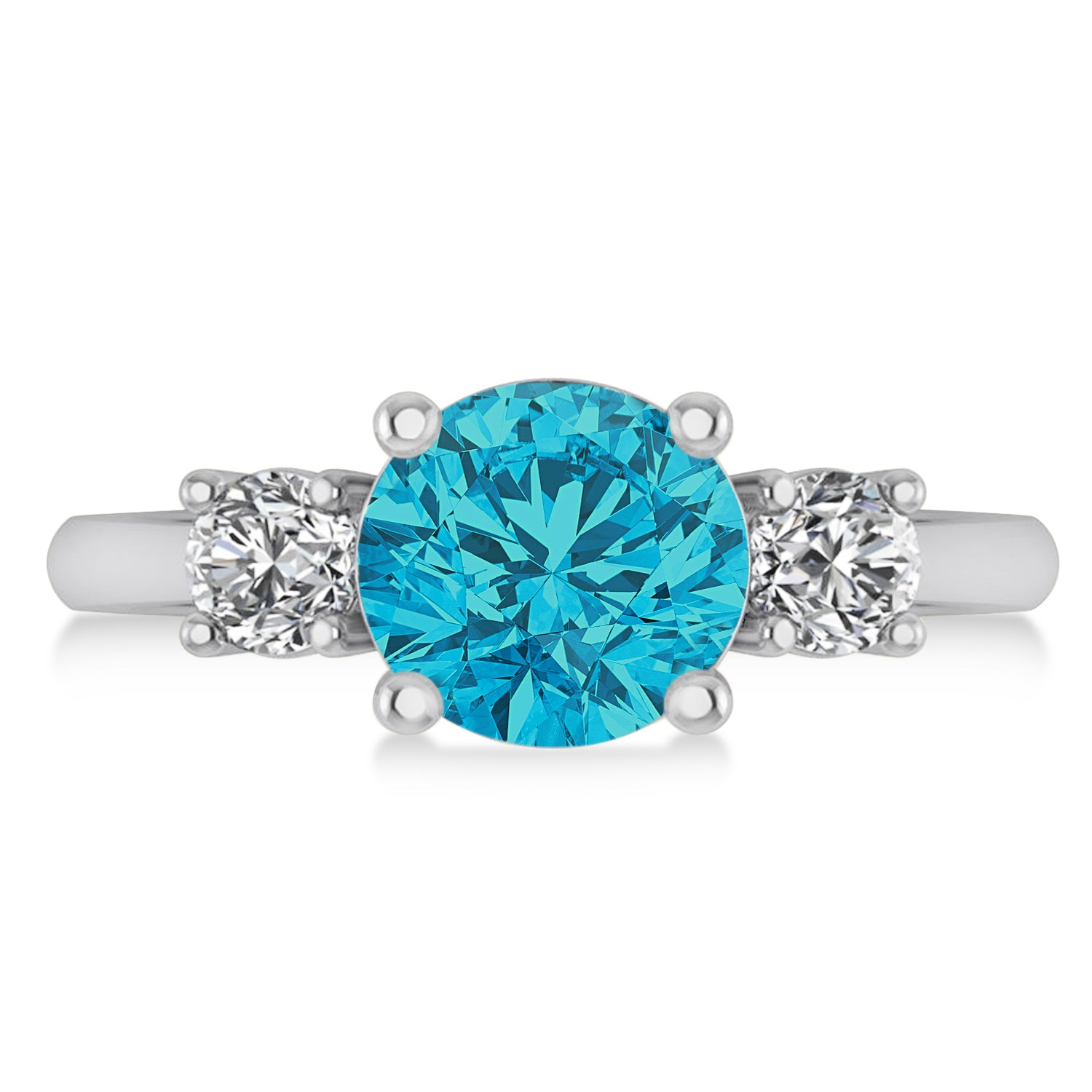 Round 3-Stone Blue & White Diamond Engagement Ring 14k White Gold (2.50ct)