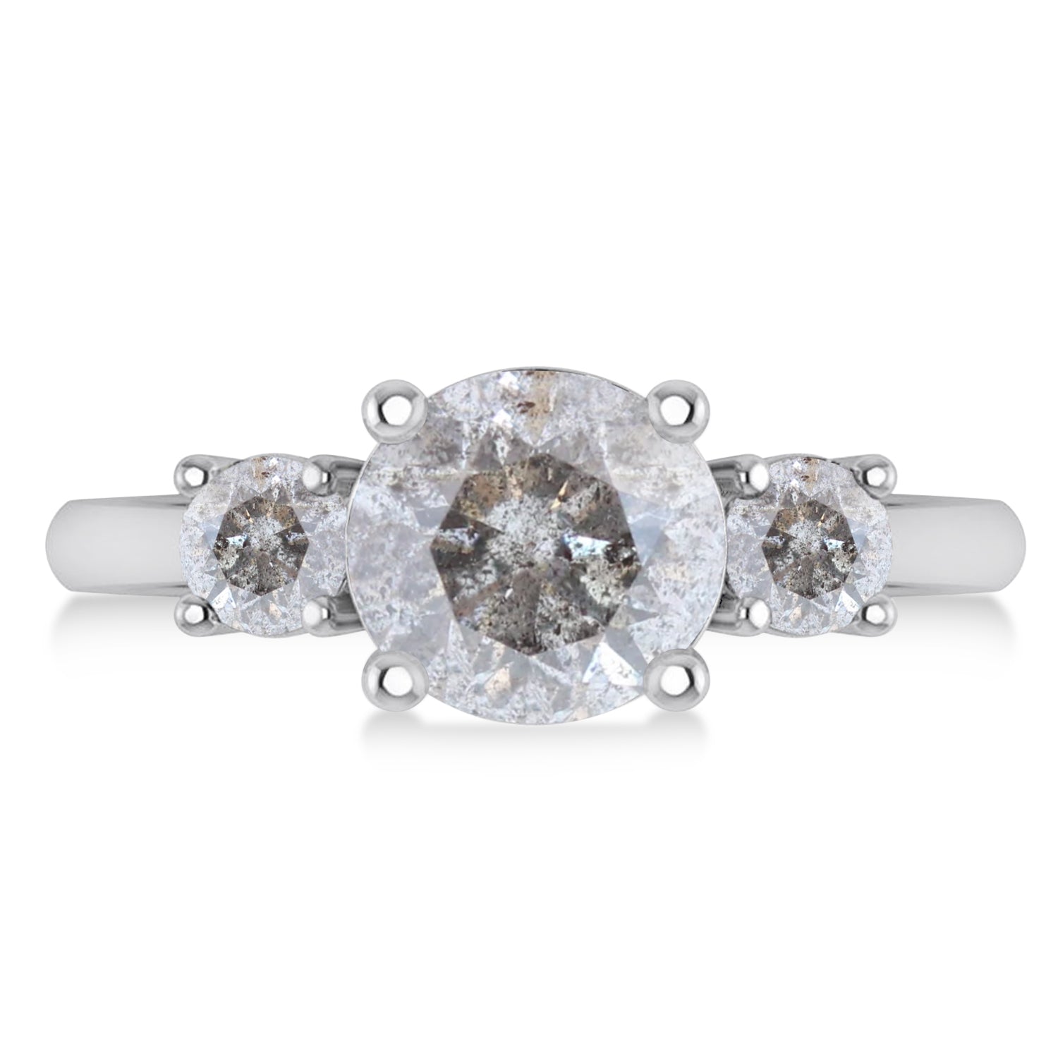 Round 3-Stone Salt & Pepper Diamond Engagement Ring 14k White Gold (2.50ct)