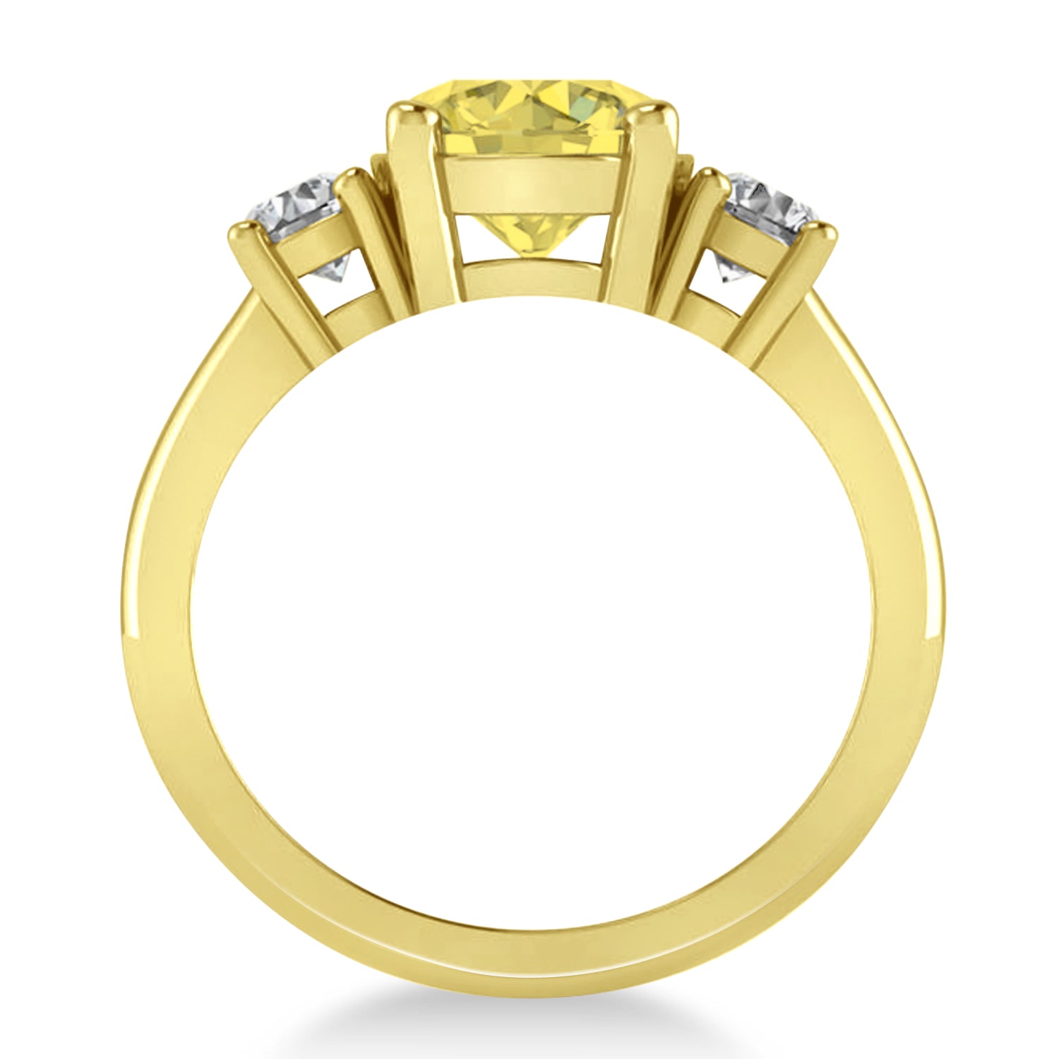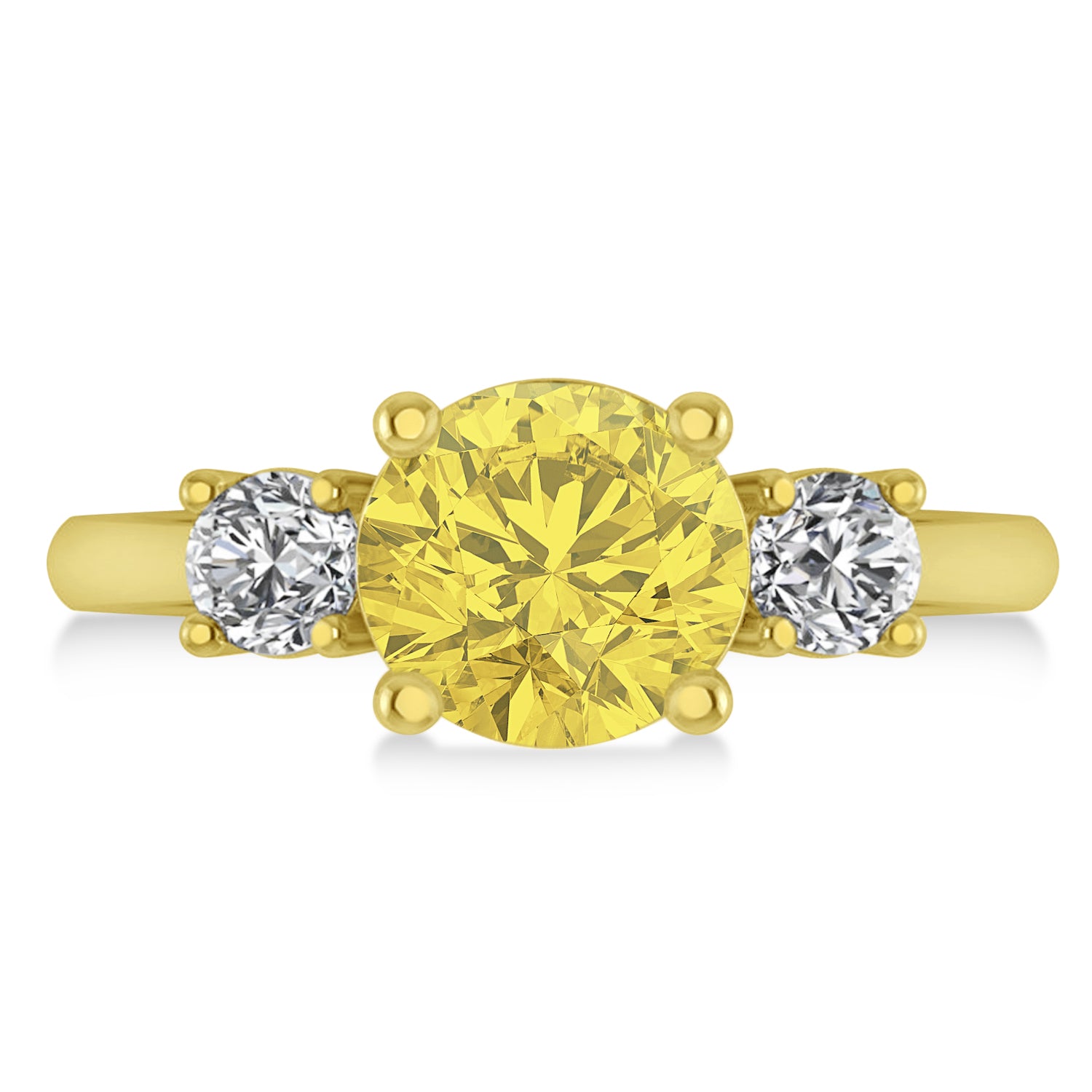 Round 3-Stone Yellow & White Diamond Engagement Ring 14k Yellow Gold (