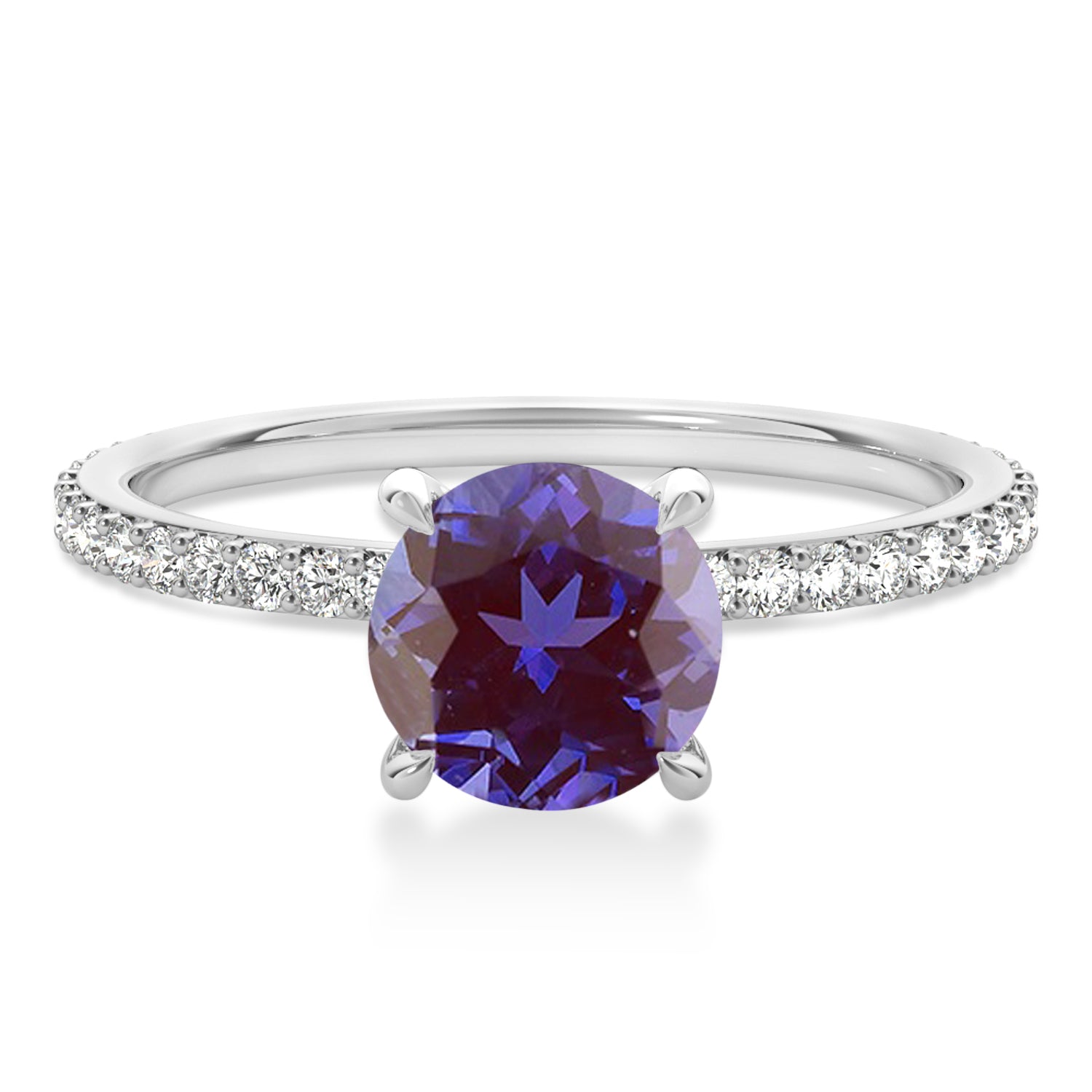 Round Alexandrite & Diamond Hidden Halo Engagement Ring Platinum (1.68