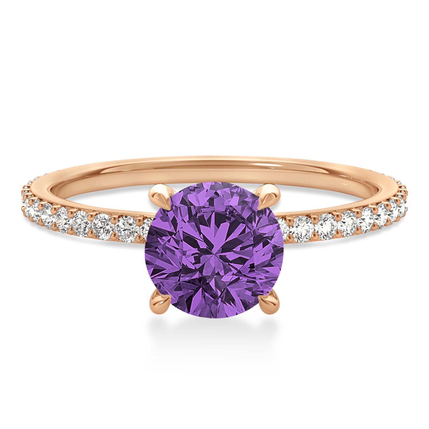Round Amethyst & Diamond Hidden Halo Engagement Ring 18k Rose Gold (1.