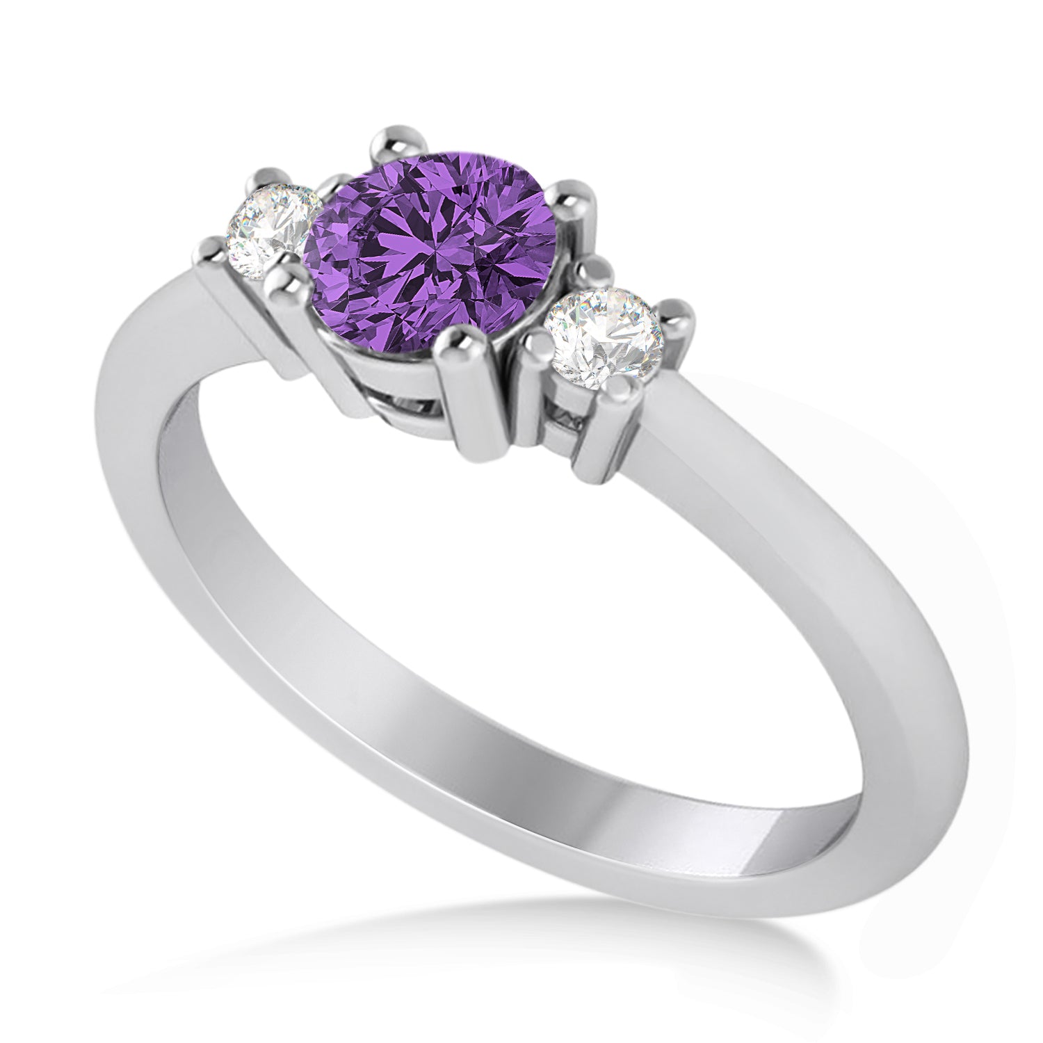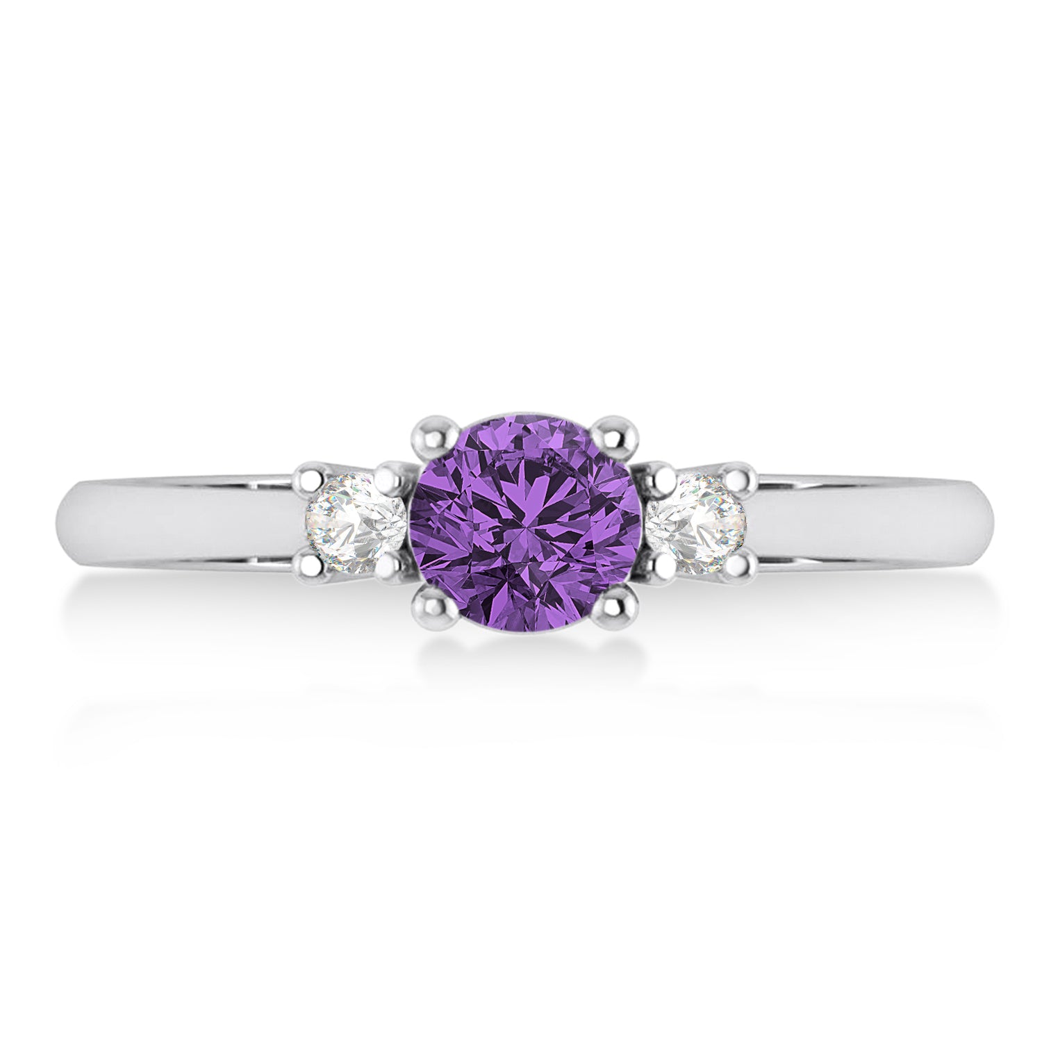 Round Amethyst & Diamond Three-Stone Engagement Ring 14k White Gold (0.60ct)