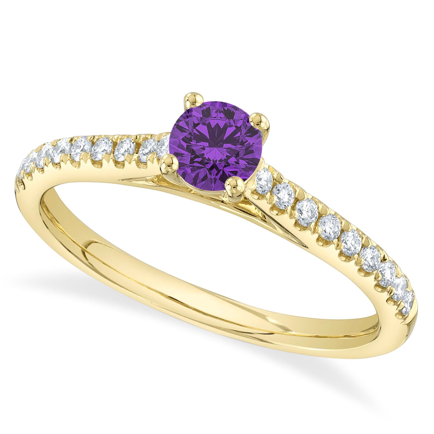 Round Amethyst Solitaire & Diamond Engagement Ring 14K Yellow Gold (0.67ct)
