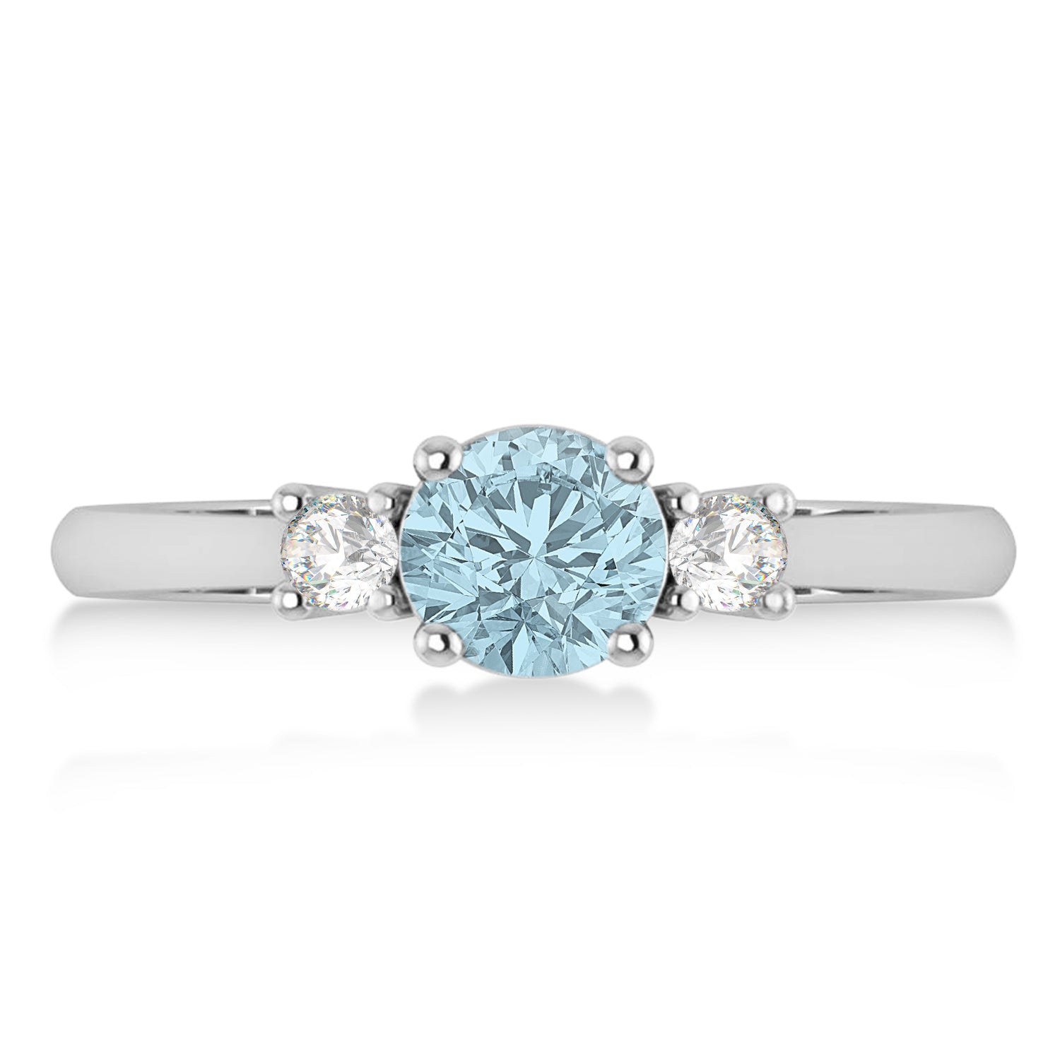 Round Aquamarine & Diamond Three-Stone Engagement Ring 14k White Gold (0.89ct)