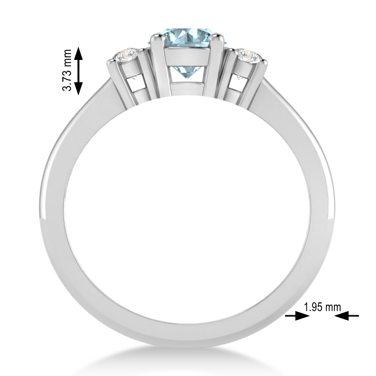 Round Aquamarine & Diamond Three-Stone Engagement Ring 14k White Gold