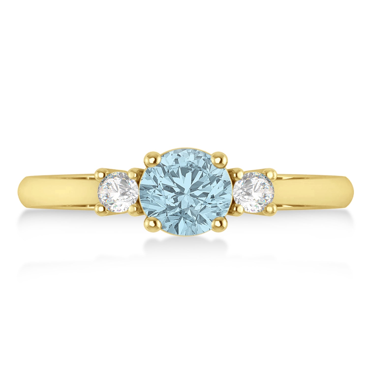 Round Aquamarine & Diamond Three-Stone Engagement Ring 14k Yellow Gold