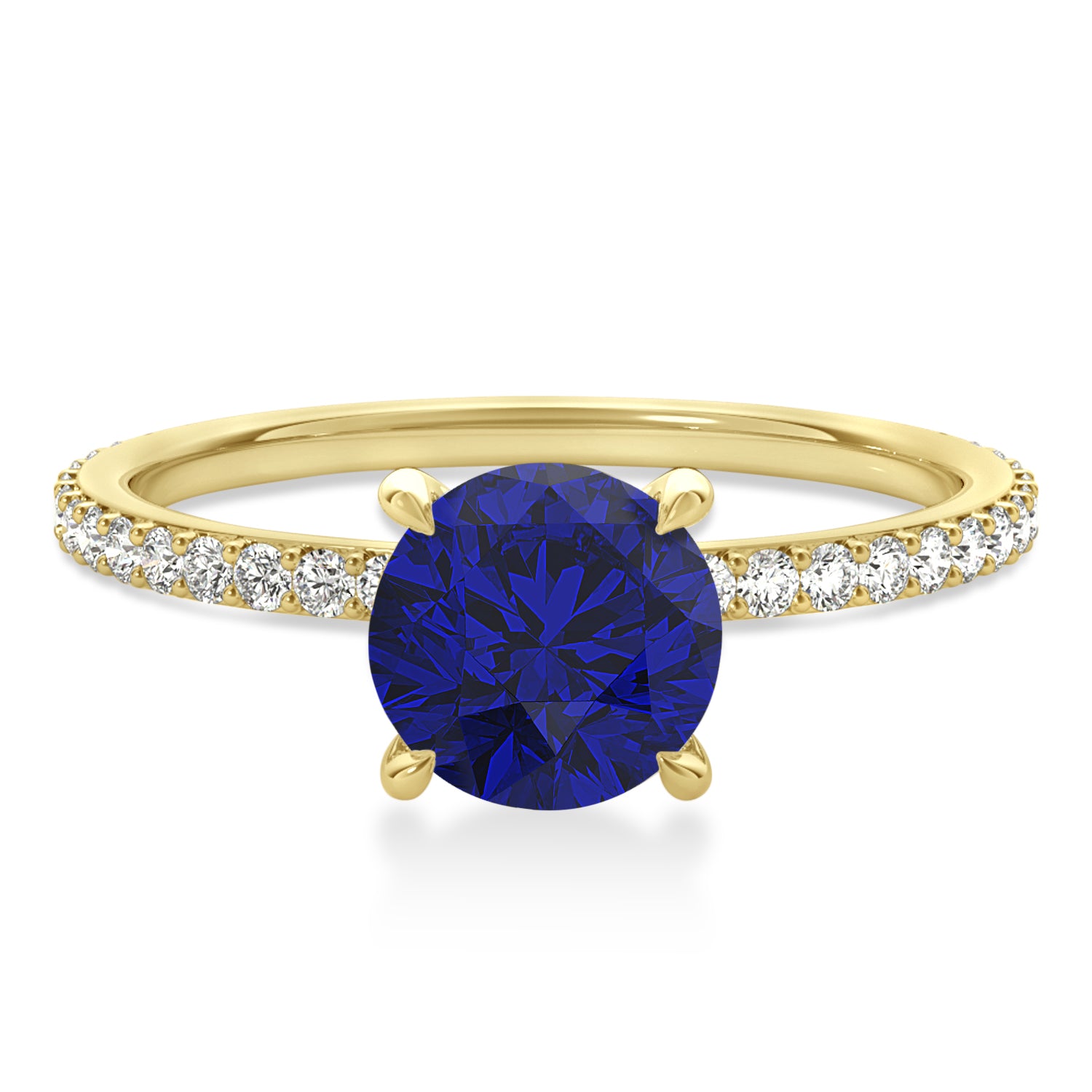 Round Blue Sapphire & Diamond Hidden Halo Engagement Ring 14k Yellow G