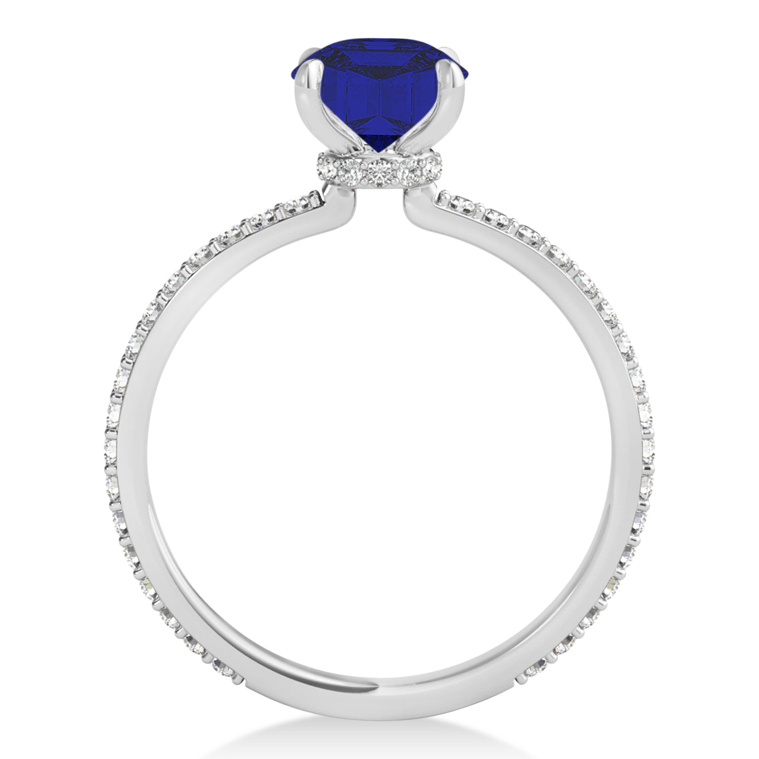 Round Blue Sapphire & Diamond Hidden Halo Engagement Ring Platinum (1.