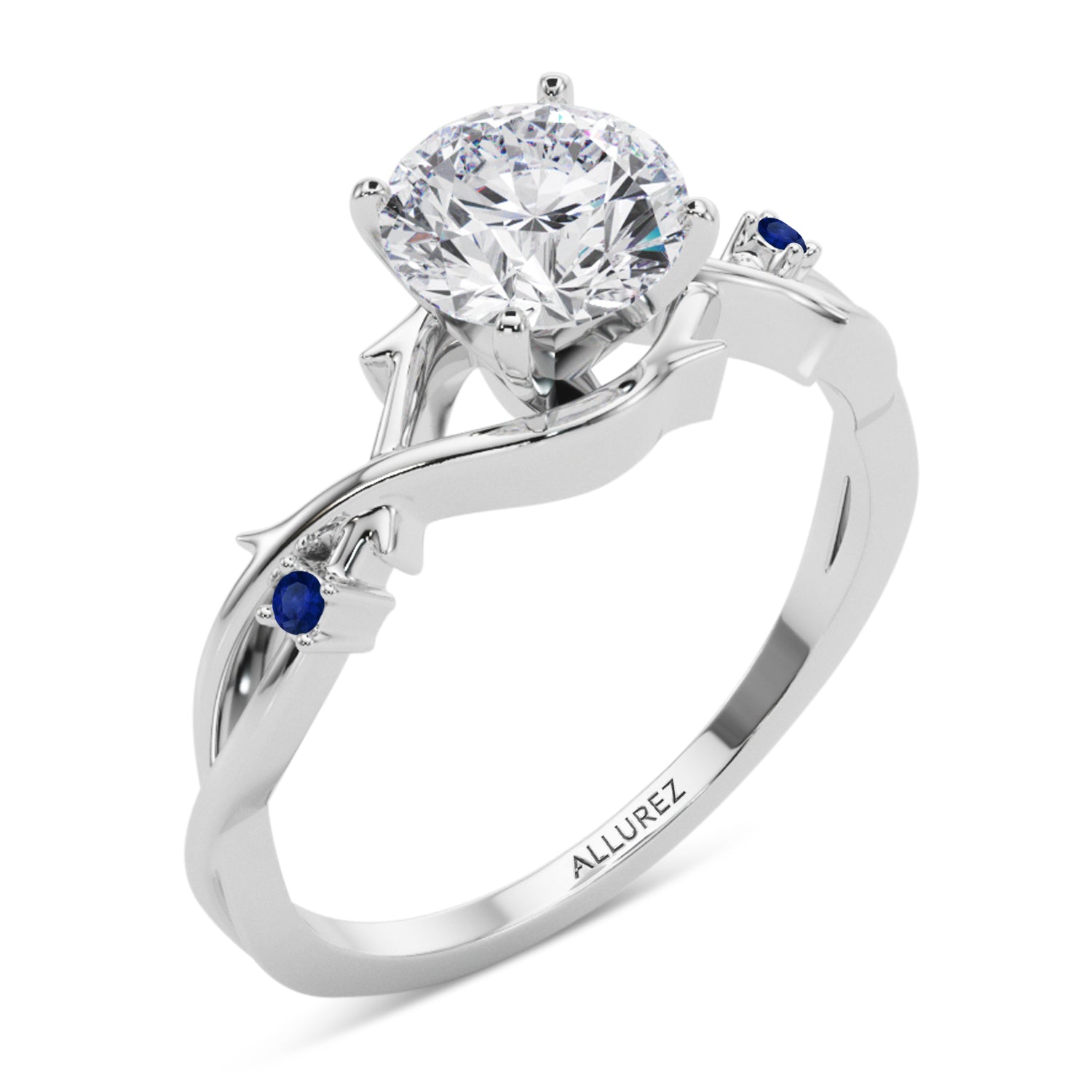 Experience the brilliance of our Round Blue Sapphire Vine Leaf Ring Bridal Set, crafted in...