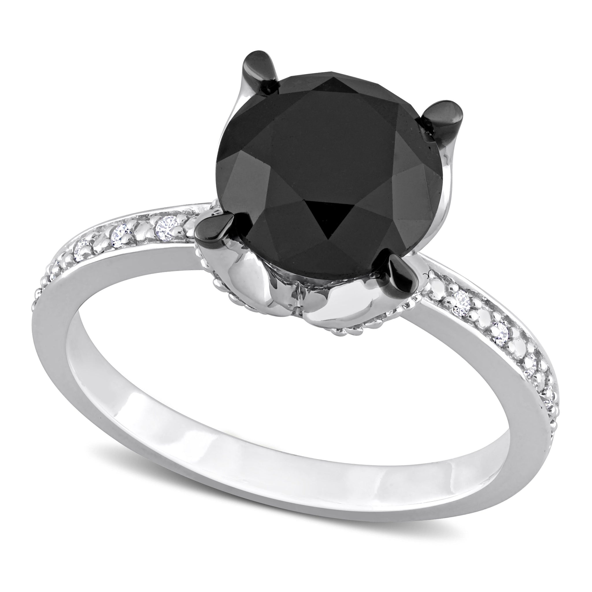 Dazzle in solitaire black diamond ring w/ white diamond accents set in 14k Whit Gold. Approx. weight of 3.06 carats. Free shipping.