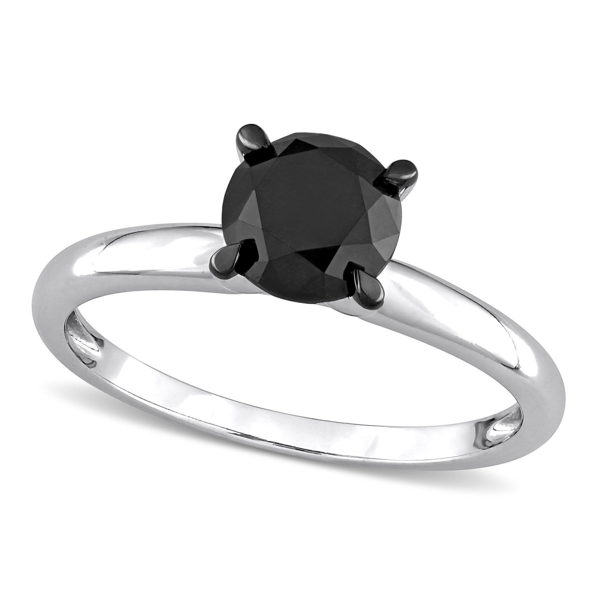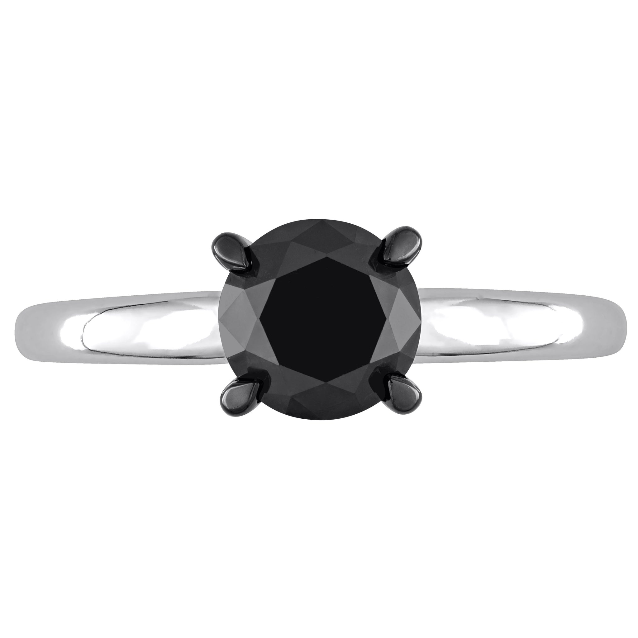 An enchanting symbol of your everlasting love, this marvelous solitaire ring features a round-cut prong-set black diamond center stone crafted in 14k white gold with black rhodium plating.