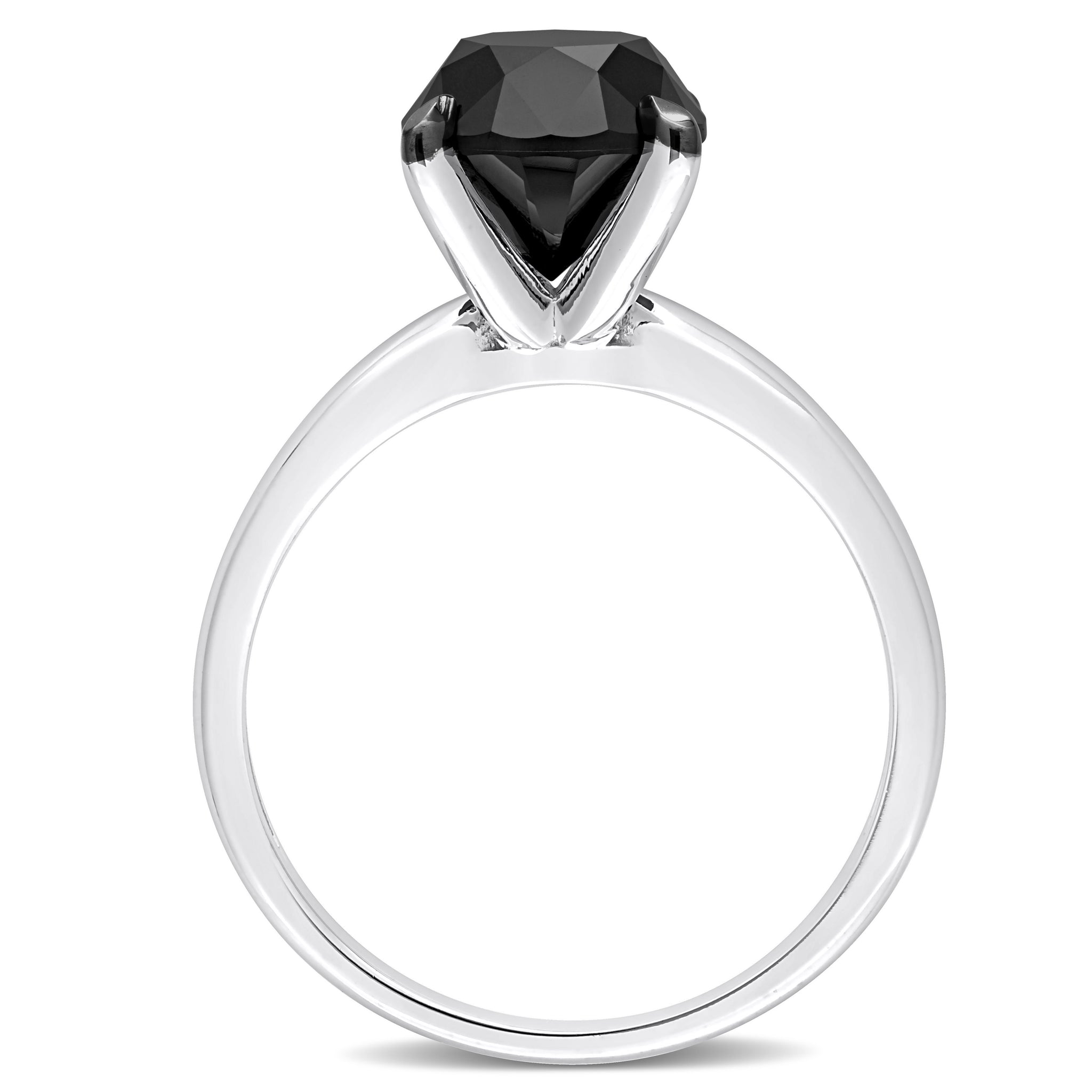 Round Cut Black Diamond Solitaire Ring in 14k White Gold (3.00ct)