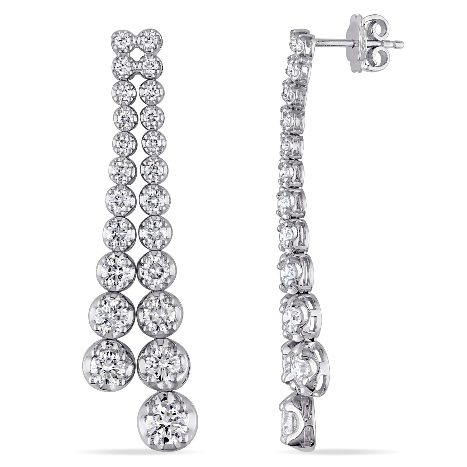Round Cut Lab Grown Diamond Drop Earrings 18k White Gold (4.38ct)