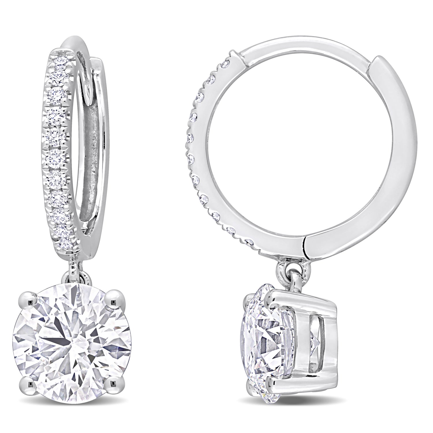 Round Cut Lab Grown Diamond Huggie Dangling Earrings 14k White Gold (2.11ct)