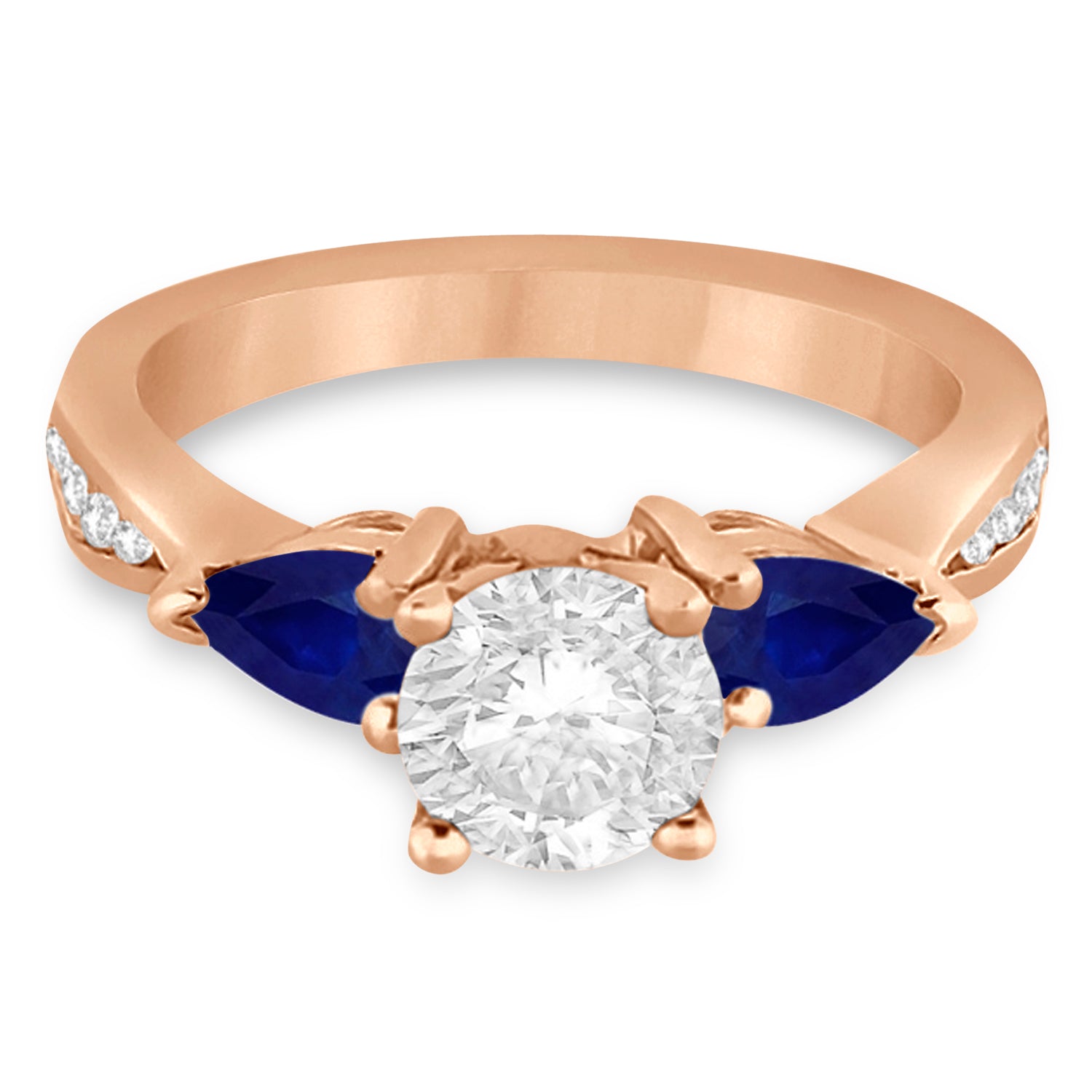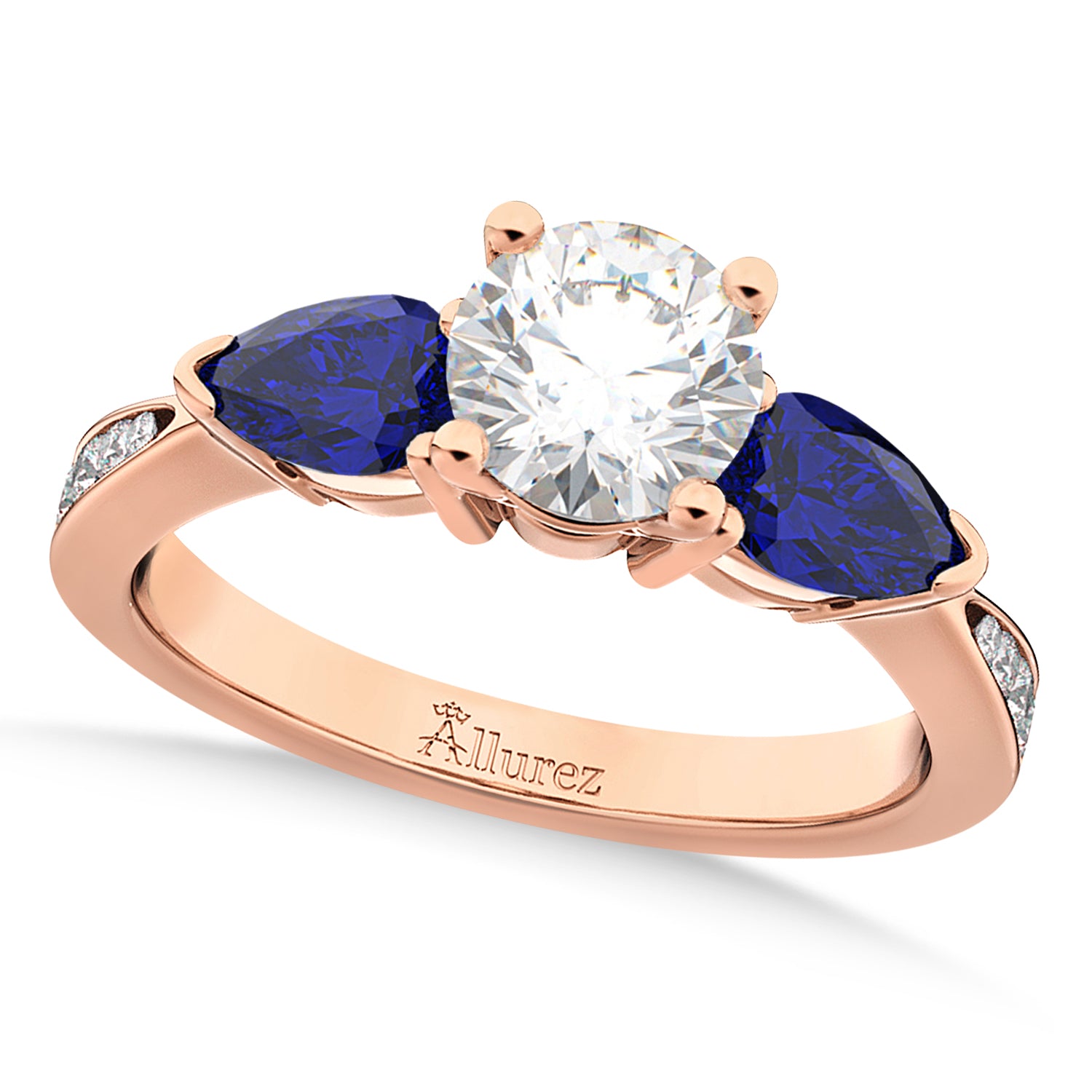 Round Diamond & Pear Blue Sapphire Engagement Ring 18k Rose Gold (1.79ct)
