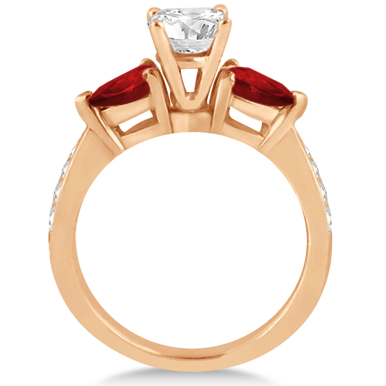 Round Diamond & Pear Garnet Engagement Ring 18k Rose Gold (1.79ct)