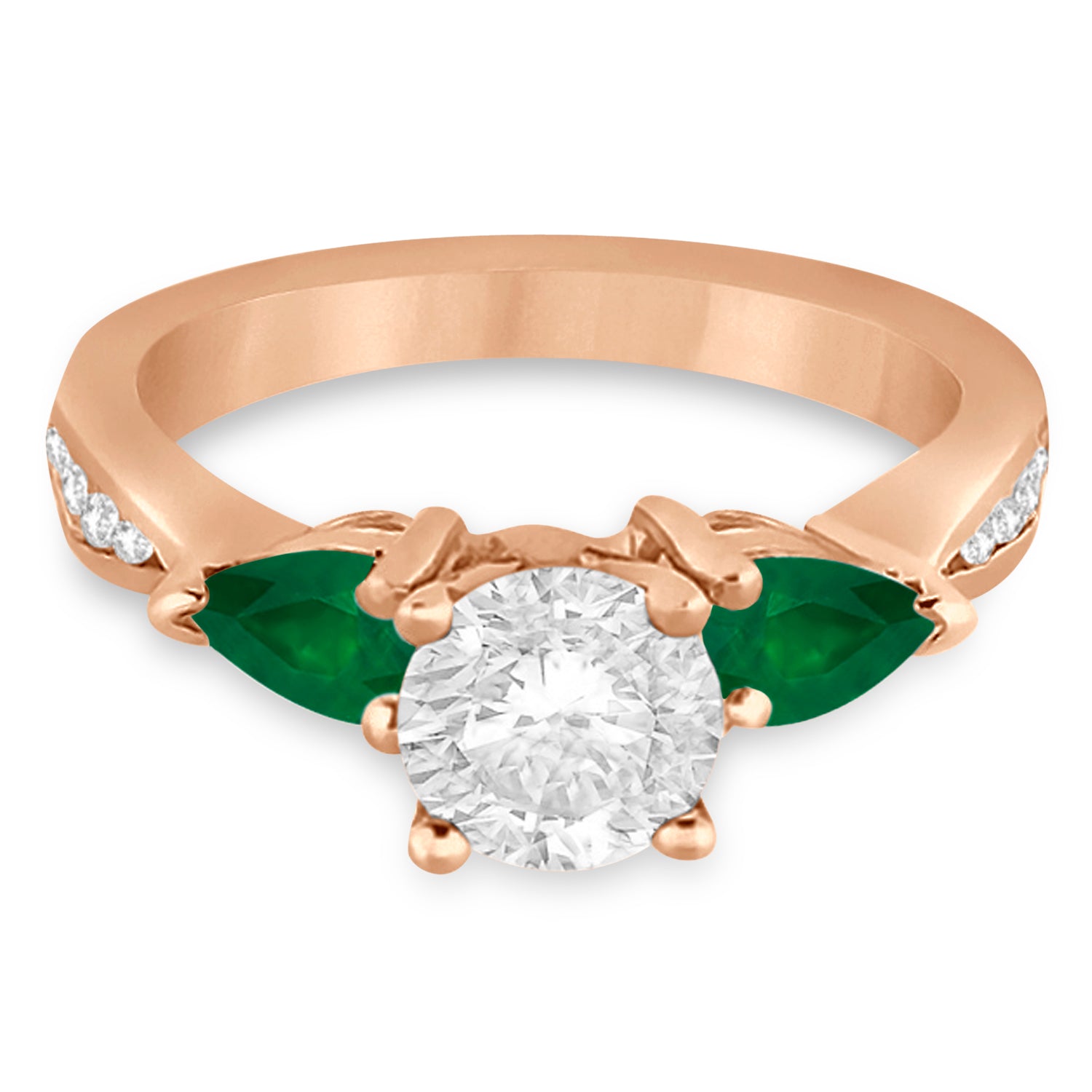Round Diamond & Pear Green Emerald Engagement Ring 18k Rose Gold (1.79