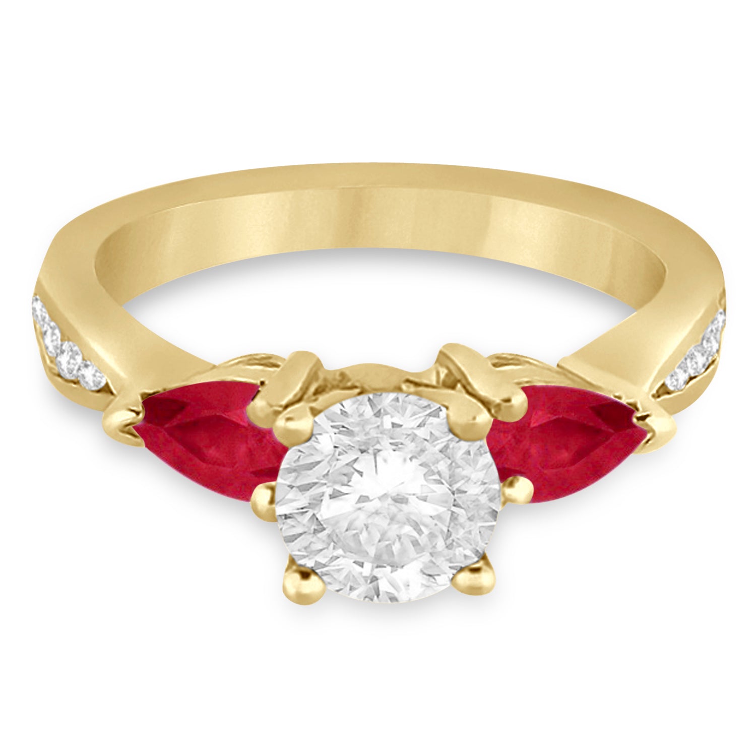 Round Diamond & Pear Ruby Gemstone Engagement Ring 14k Yellow Gold (1.