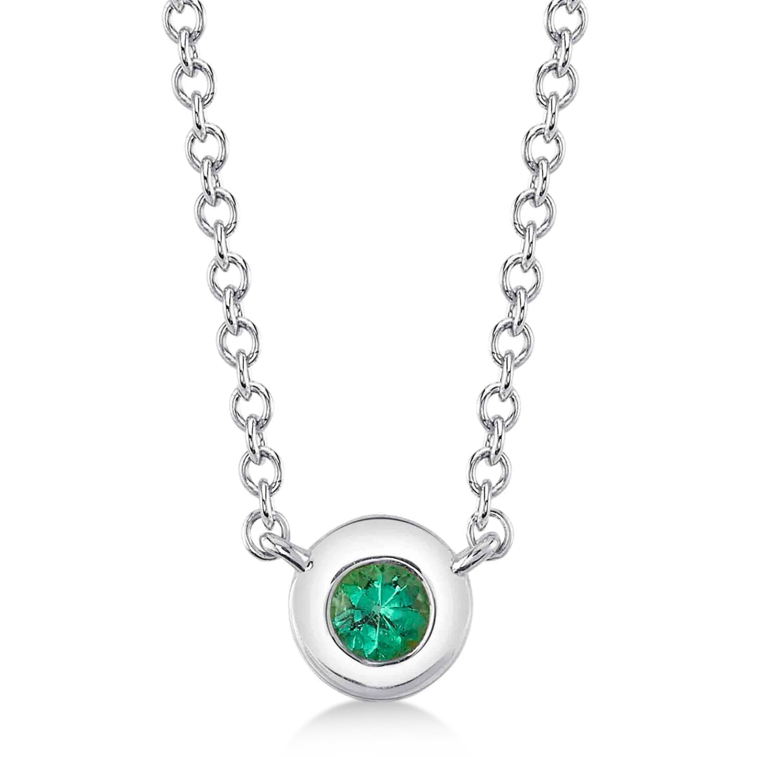 Round Emerald Bezel Pendant Necklace 14K White Gold (0.04ct)