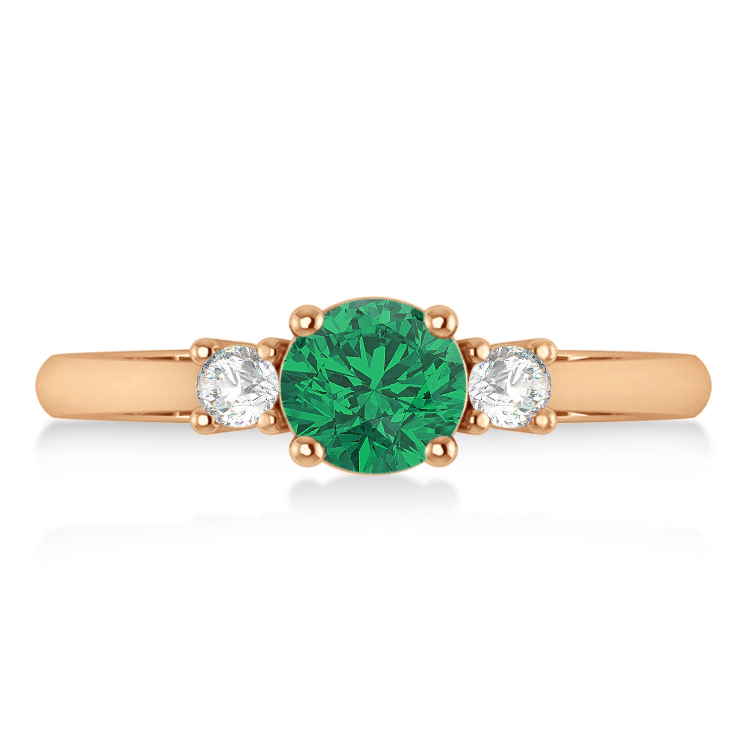 Round Emerald & Diamond Three-Stone Engagement Ring 14k Rose Gold (0.8