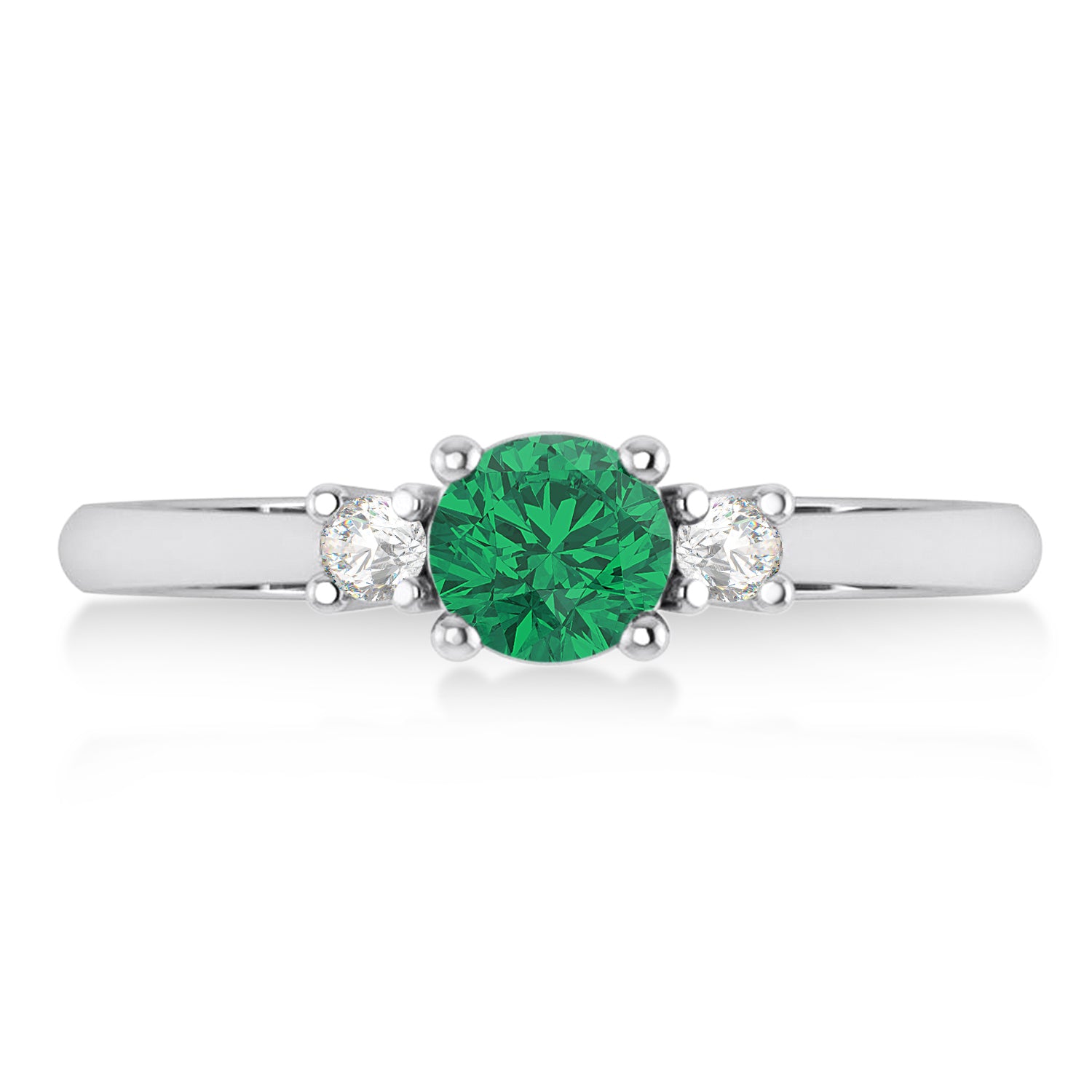 Round Emerald & Diamond Three-Stone Engagement Ring 14k White Gold (0.