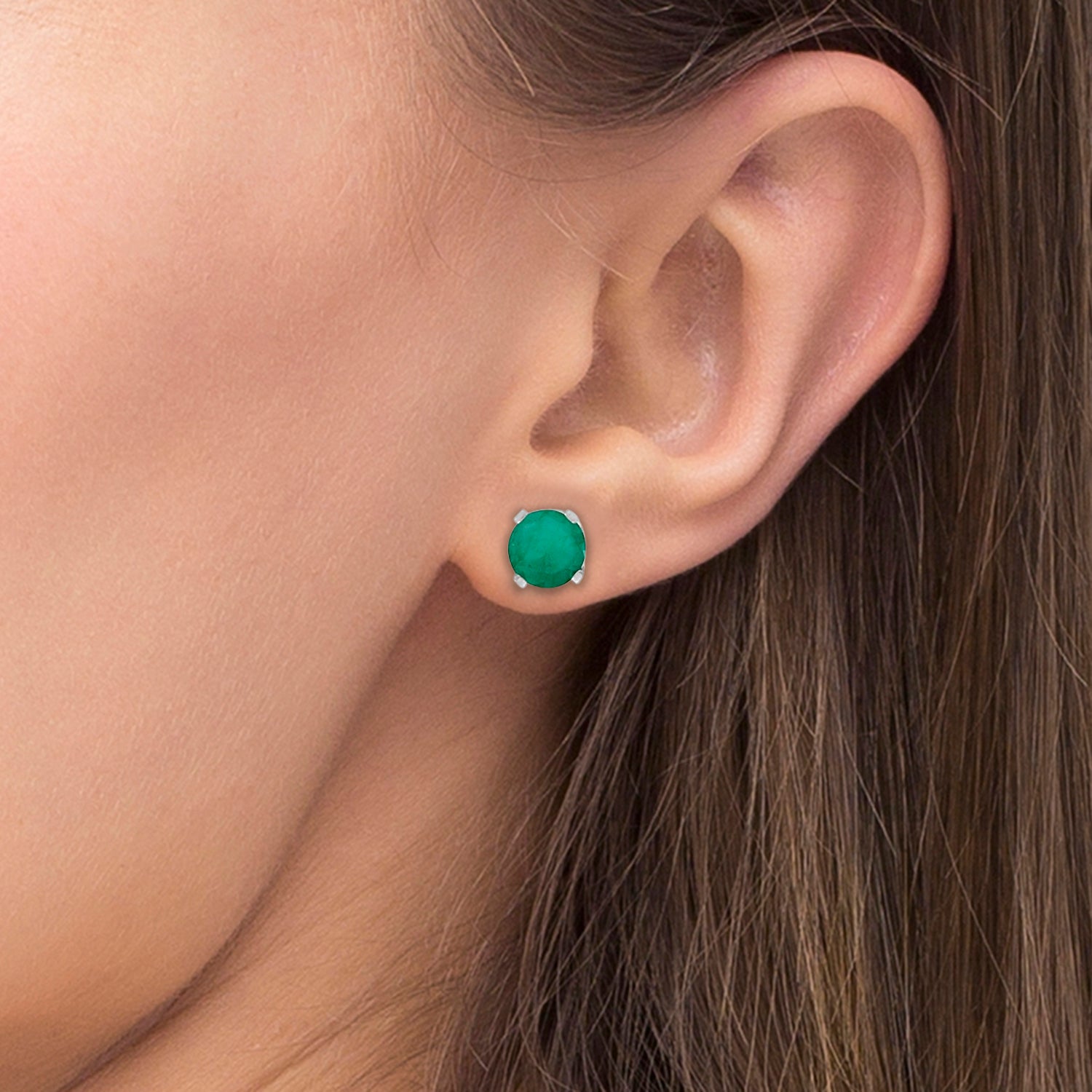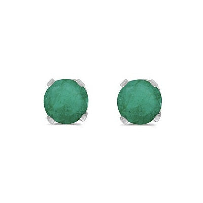 These 14k white gold round gemstone studs feature 4mm genuine natural Emerald with a 0.50ct total weight.