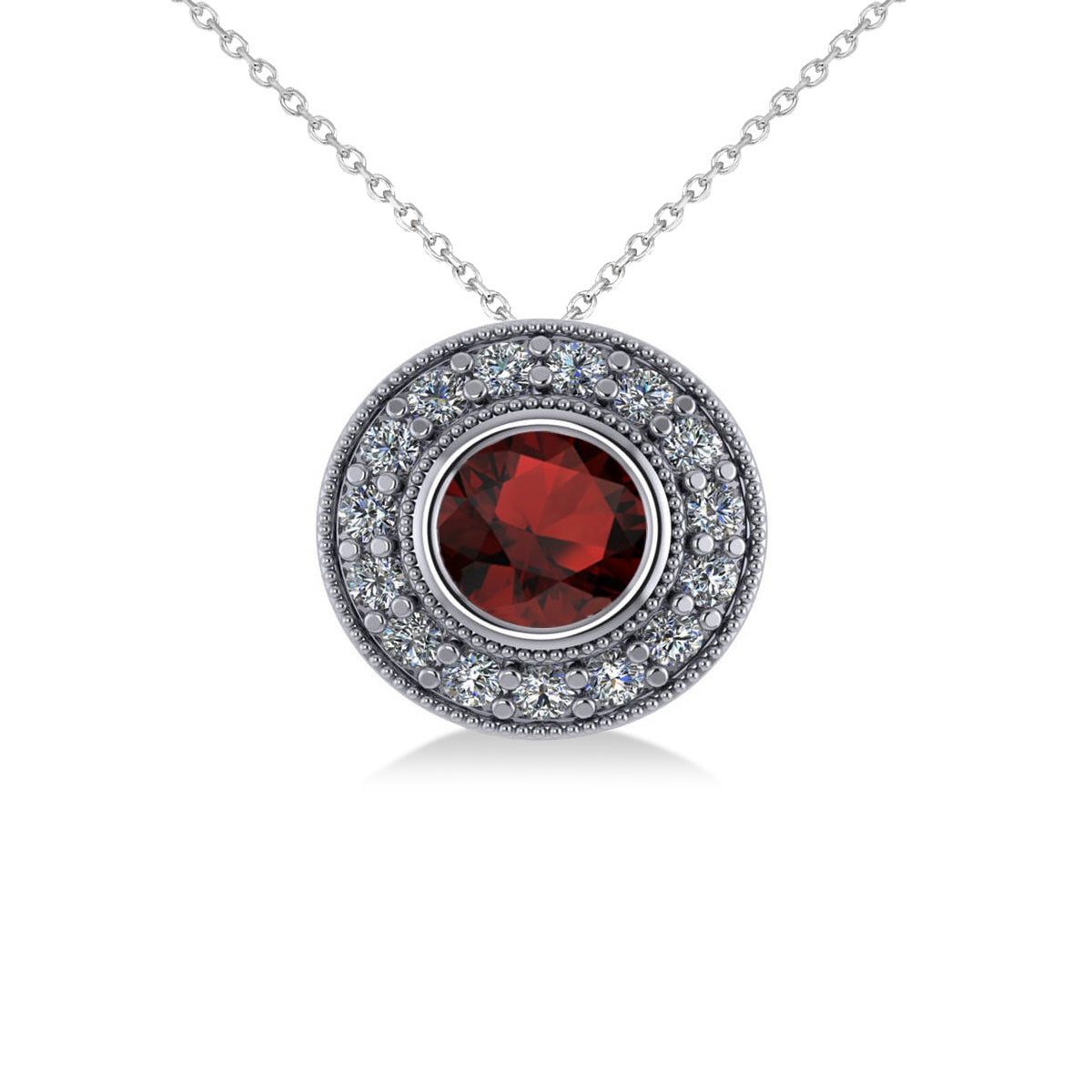 Round Garnet & Diamond Halo Pendant Necklace 14k White Gold (1.85ct)