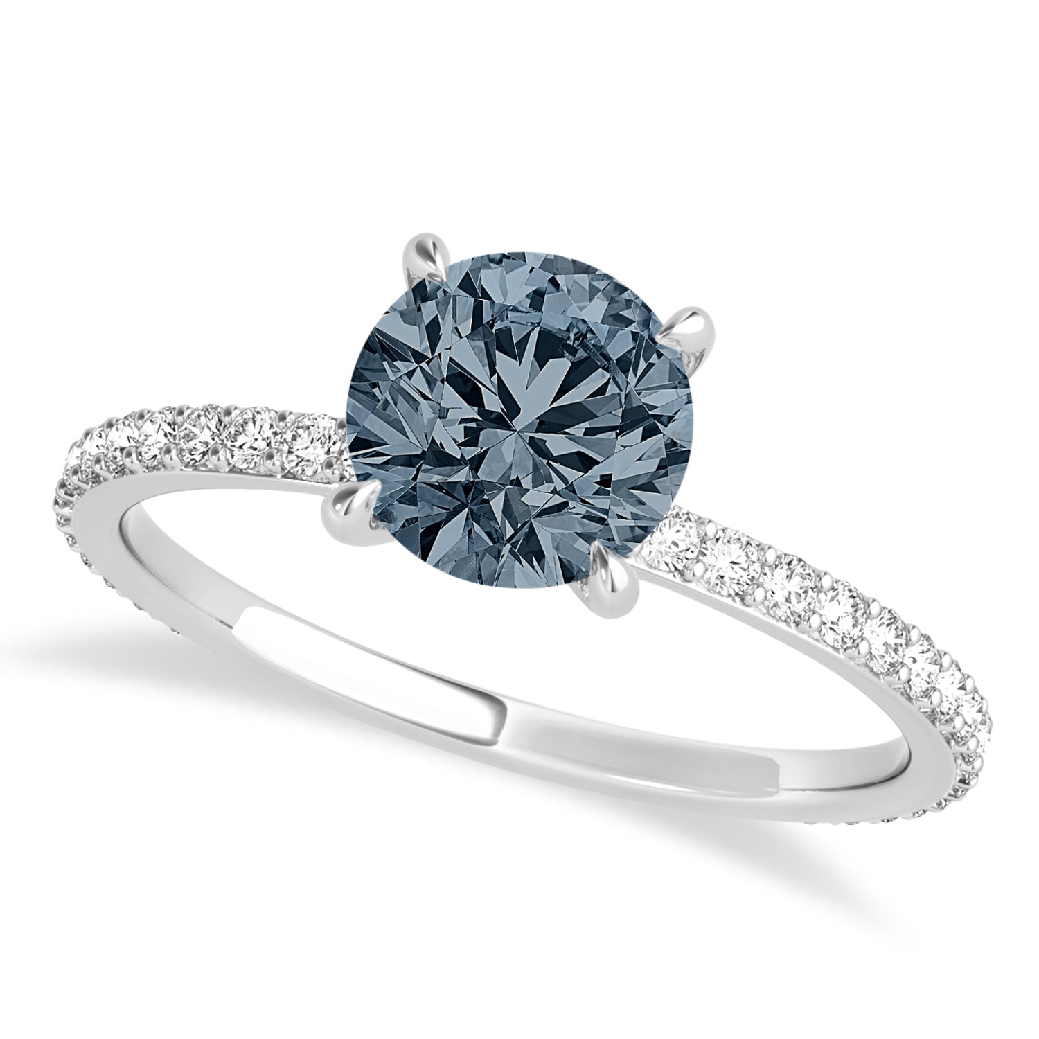Round Gray Spinel & Diamond Hidden Halo Engagement Ring Platinum (1.68