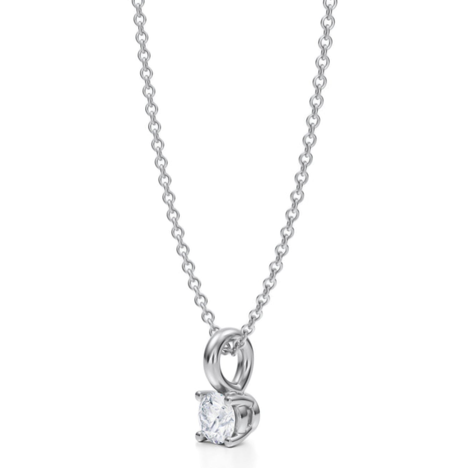 Elevate your elegance with this Round Lab Diamond 4-Prong Necklace in 14K White Gold. Featuring a dazzling 0.25ct lab grown diamond, this timeless piece is set in a classic prong setting offering brilliance and sophistication. Perfect for everyday wear or special occasions.