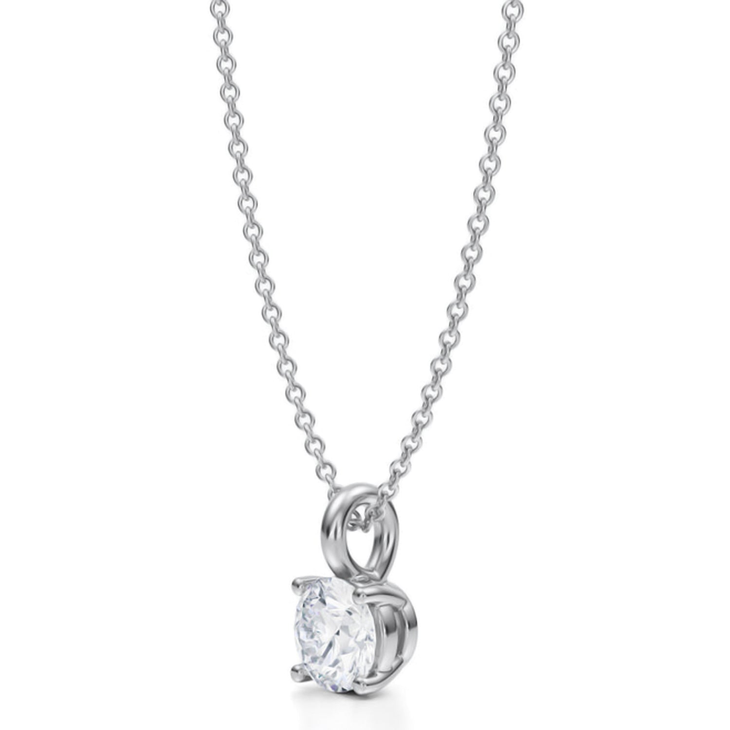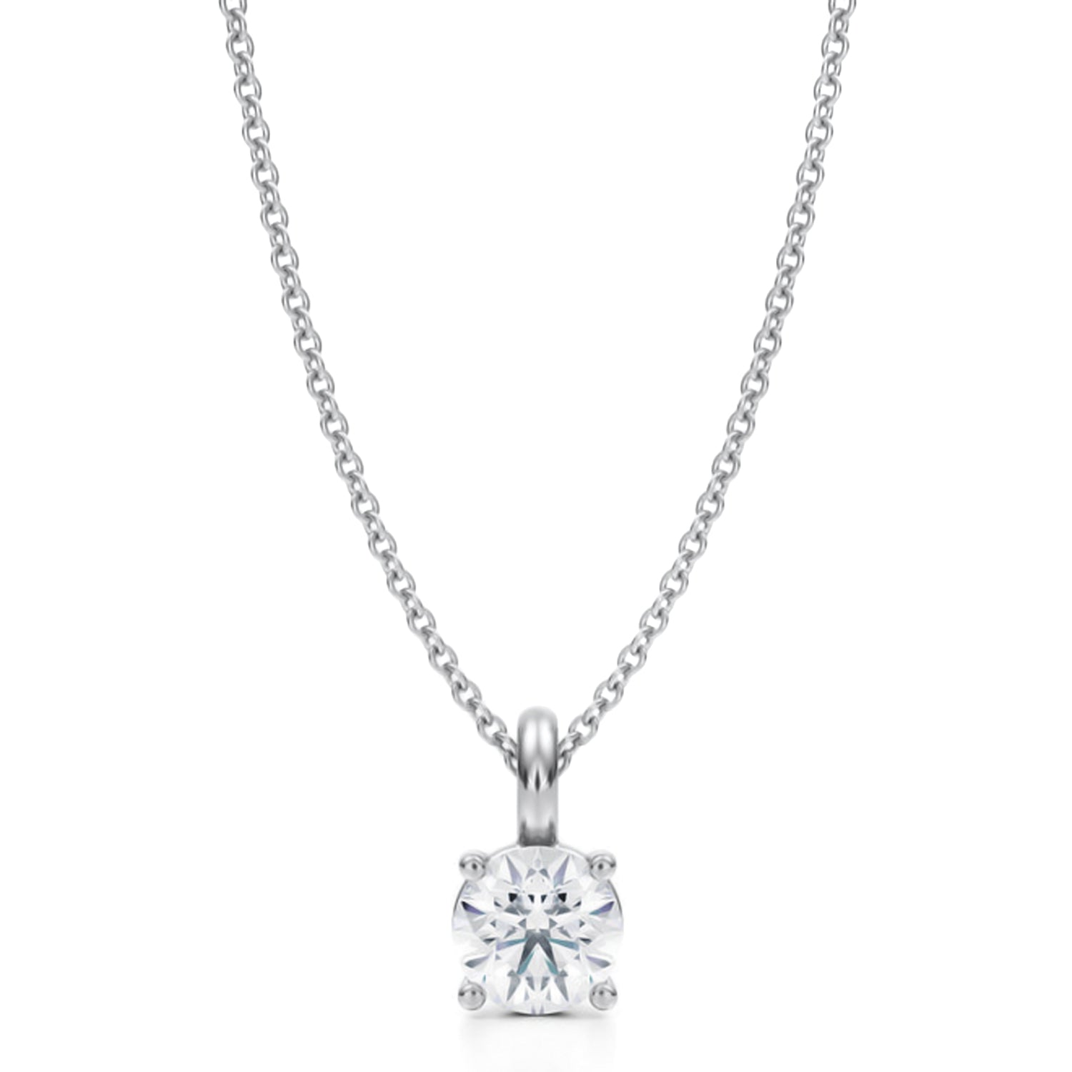 Round Lab Diamond 4-Prong Necklace 14K White Gold (0.75ct)
