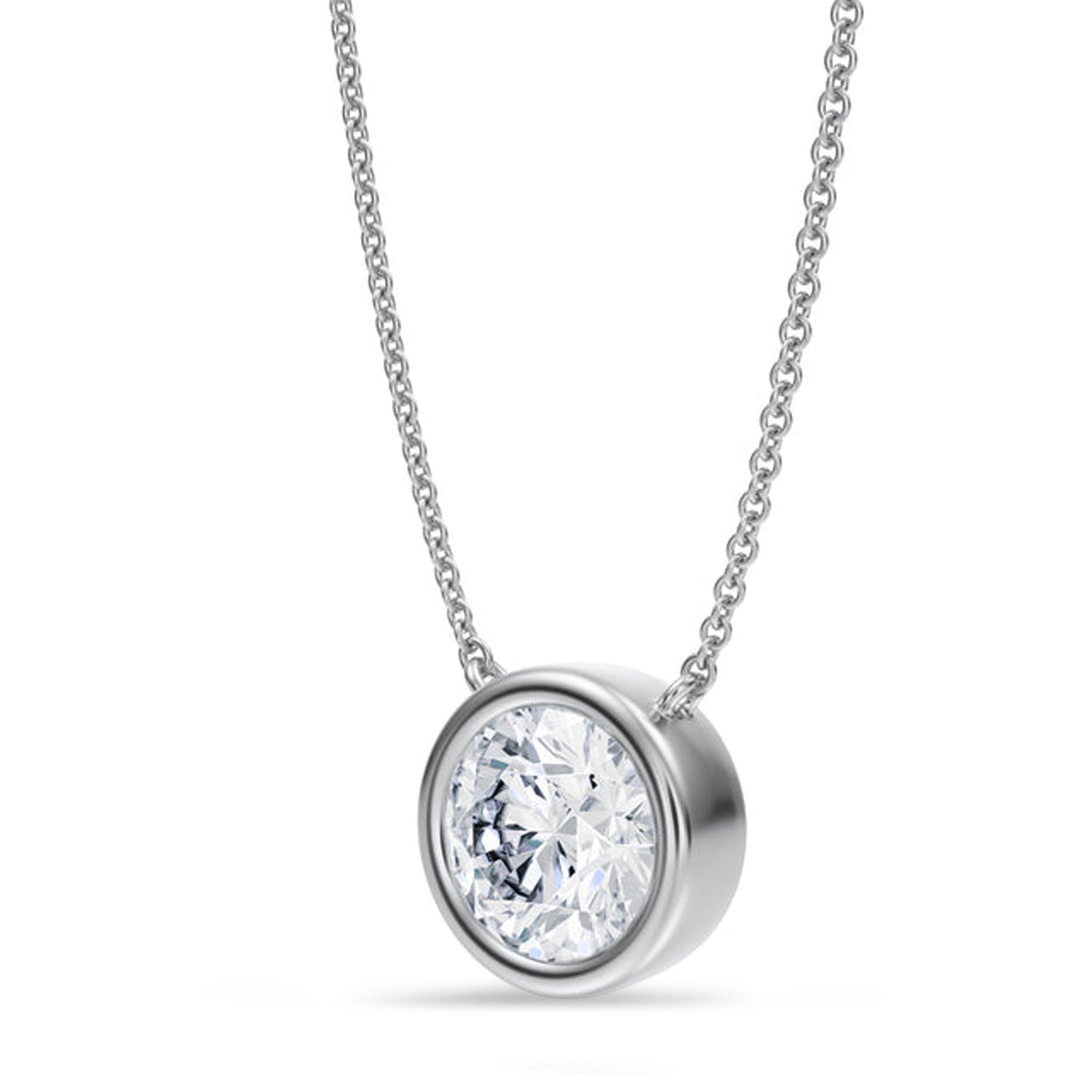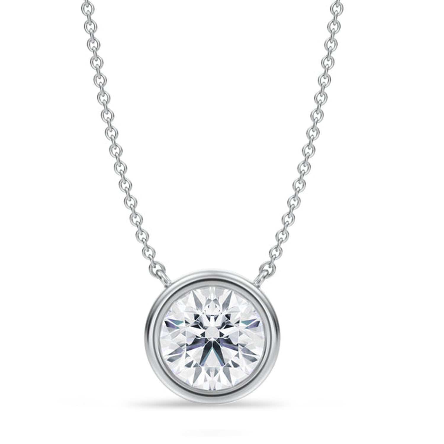 Embrace timeless sophistication with this Round Lab Diamond Solitaire Pendant Necklace in 14K White Gold. Featuring a breathtaking 2.00ct lab grown diamond in a bezel setting, it delivers radiant sparkle and lasting impression. The minimalist white gold setting enhances the stone natural brilliance. Ideal for marking special moments or adding elegance to your everyday style. A luxurious piece designed to shine for a lifetime.