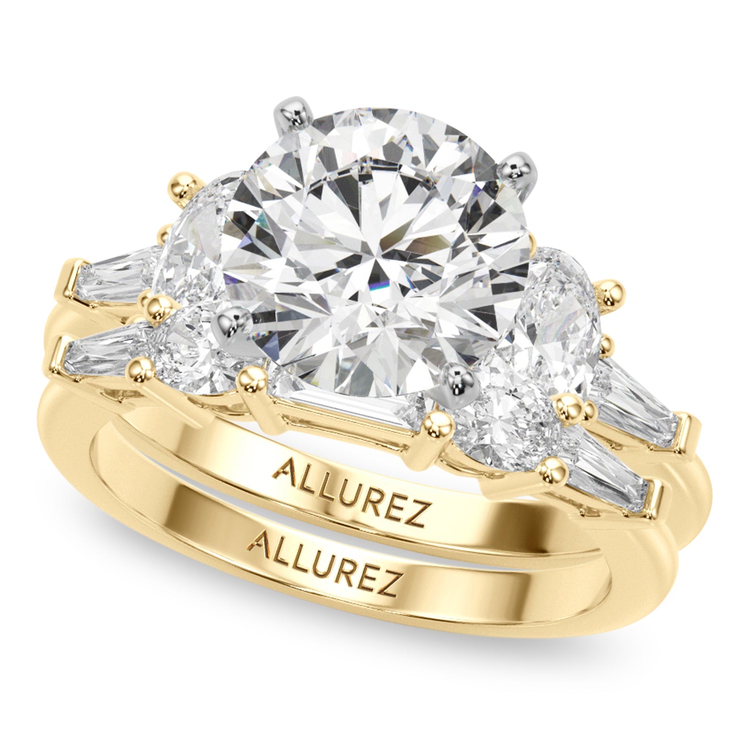 Round Moissanite Diamond Engagement Ring Bridal Set 18K Yellow Gold (4.93ct)